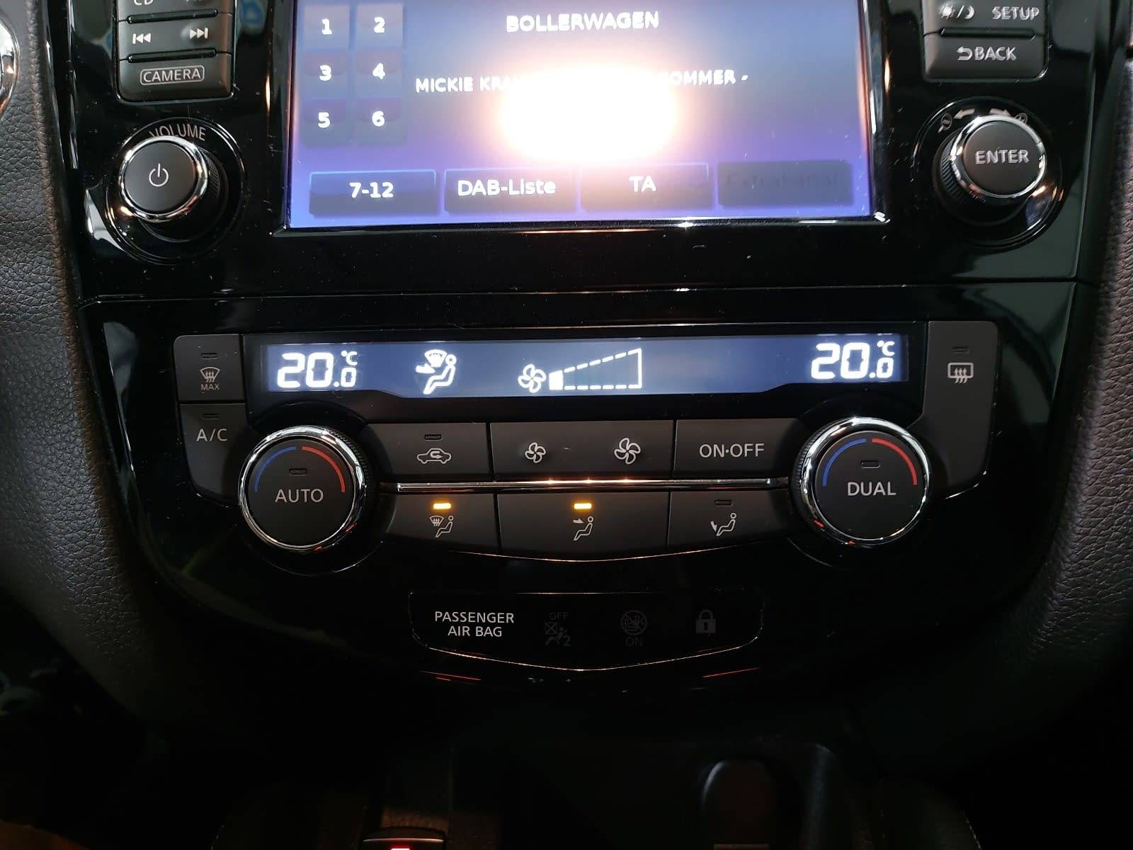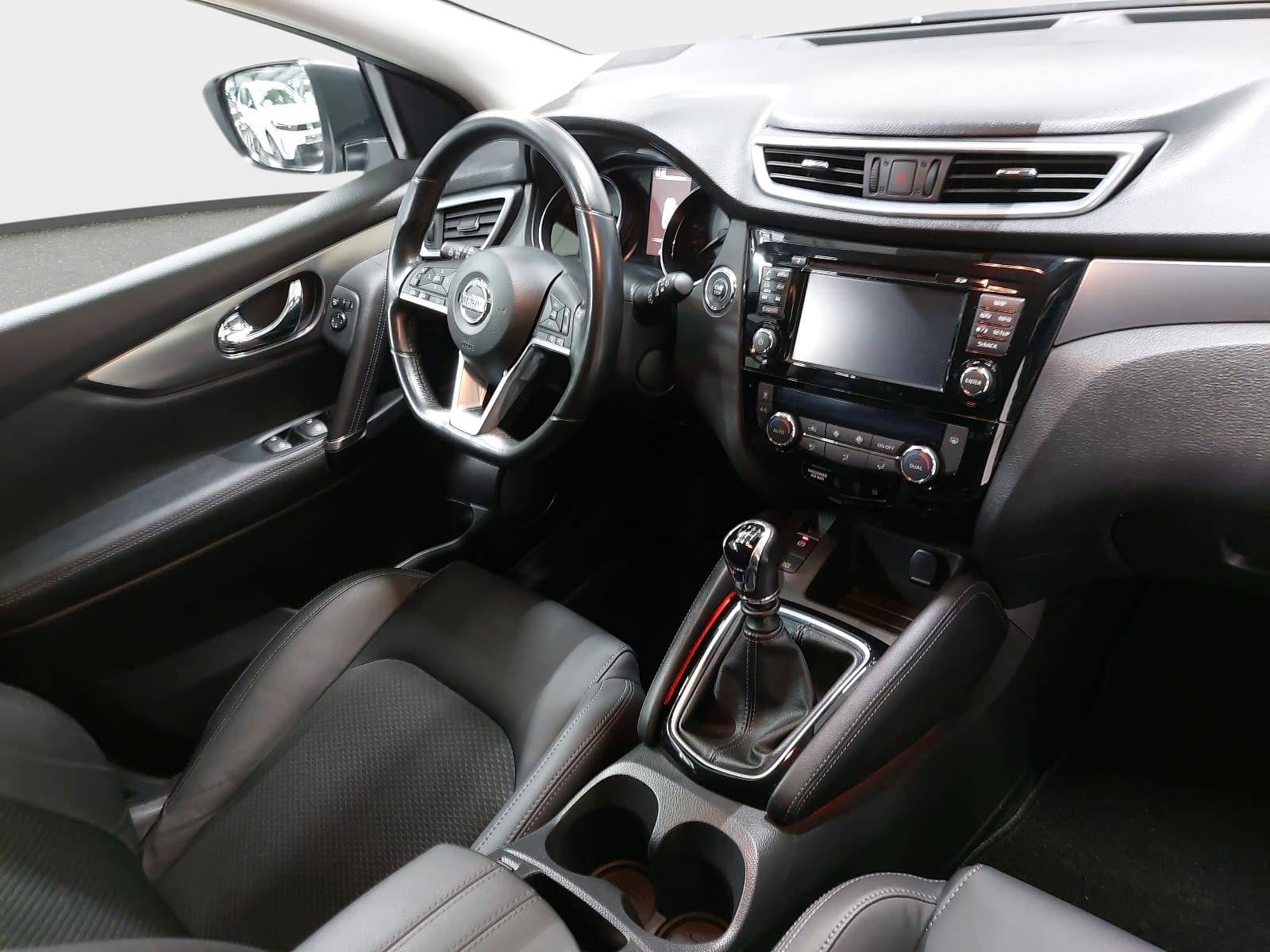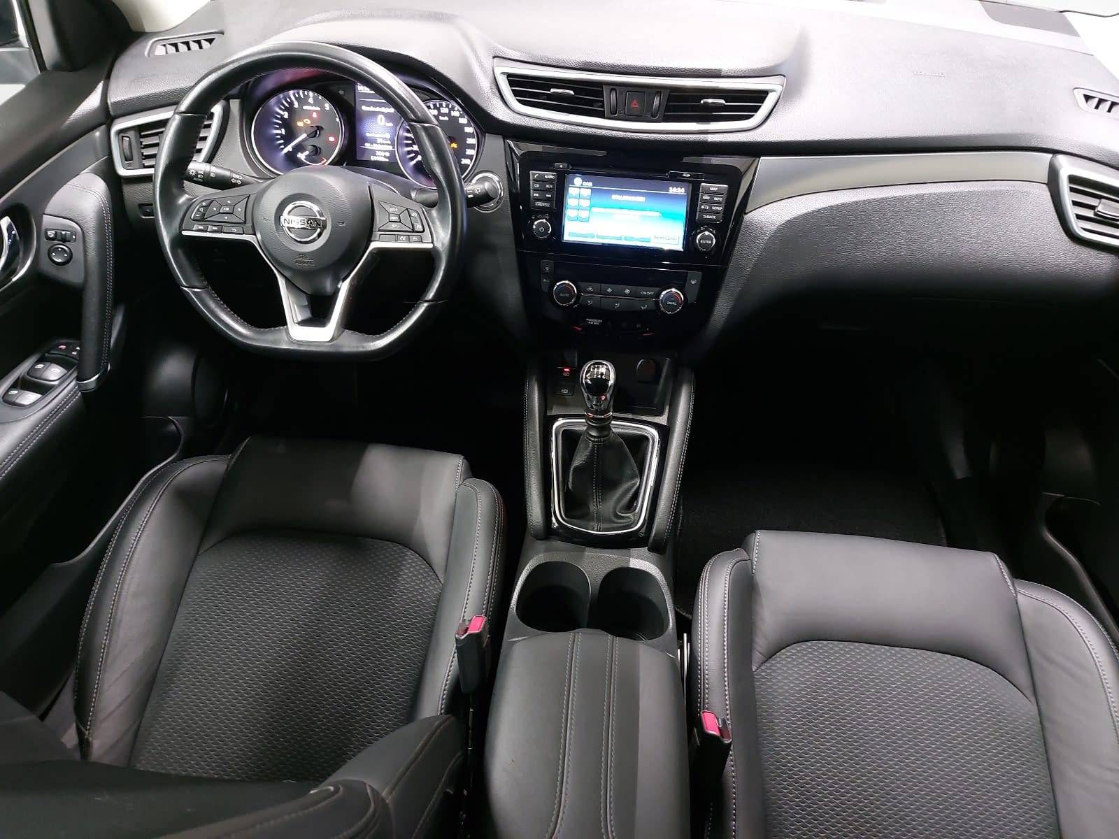 AusstattungSicherheitABS Airbag Isofix Rückfahrkamera Seitenairbags Servolenkung Tagfahrlicht Spurhalte Assistent KomfortElektr. Fensterheber elektr. Stabilitätsprogramm (ESP) Elektrische Sitze Klimaautomatik Lichtsensor Multifunktionslenkrad Navigationssystem Nebelscheinwerfer Panoramadach Regensensor Sitzheizung Start/Stopp Automatik Tempomat ExtrasDachreling Leichtmetallfelgen Sportsitze UnterhaltungBluetooth CD MP3-Schnittstelle Radio Beschreibung- Panorama-Glasdach - Klimaautomatik, 2 Zonen, inkl. Pollenfilter - Tagfahrlicht - Teilledersitze, schwarz - Bluetooth-Schnittstelle für Mobiltelefone - Bordcomputer - Design Paket - INTELLIGENT KEY mit Start-/Stopp-Knopf - Lenkradfernbedienung - NissanConnect Navigationssystem inkl. Around View - Radio-CD-Kombination mit Bluetooth, AUX, 6 LS - Rückfahrkamera in Farbe - Stopp-/Start-System - USB-Schnittstelle - Digitalradio (DAB+) - Monoform-Design-Sitze, Teilleder schwarz (Stoff-Leder-Kombination) - Elektronisches Stabilitätsprogramm (ESP) - Servolenkung, elektrisch, geschwindigkeitsabhängig - Nebelscheinwerfer - Nebelschlussleuchte - Verkehrszeichenerkennung - Auto-Hold-Funktion - Sitzheizung, vorne - autonomer Notbremsassistent - Fahrer- und Beifahrerairbag - Kopfairbags, vorn und hinten - Seitenairbags, vorn - Wegfahrsperre, elektronisch - Aktive Fahrkomfortregelung - ABS mit elektronischer Bremskraftverteilung (EBD) - Spurhalte-Assistent - Zentralverriegelung mit Funkfernbedienung - Geschwindigkeitsregelanlage (Tempomat) mit Speed Limiter - Mittelarmlehne für die Rücksitzbank - Haifisch-Antenne - Fensterheber, elektrisch vorn und hinten - 18-Zoll-Leichtmetallfelgen - Einparkhilfe, vorne und hinten - Silberne Dachreling - Aktive Spurkontrolle - Fahrersitz elektrisch verstellbar - Fahrlichtautomatik - Fernlicht-Assistent - Regensensor - Beifahrersitz, höhenverstellbar - Ambientebeleuchtung - Mittelarmlehne - Armlehne für den Fahrer - Außenspiegel, elektr. einstellbar, beheizbar, in W - Außenspiegel, elektrisch anklappbar - ISOFIX-Kindersitzbefestigungspunkte - Außenspiegel mit integriertem Blinklicht - Elektronische Parkbremse (e-PKB) - Reifendruckkontrollsystem - Fahrerassistenz-Paket - Komfortsitze vorne, Fahrersitz mit Lordosenstütze - Seiten- und Heckscheibe verdunkelt ab der B-Säule - Lederlenkrad - Chromeinfassungen für die Nebelscheinwerfer - Sonnenblenden mit Make-Up Spiegel - Rücksitzbank, Rückenlehne asymmetrisch (60:40) - Friendly Lighting - Smartphone Integration - Reserverad als Notlaufrad - Kindersicherung an den hinteren Türen - Warnlampe und akustisches Warnsignal für Gurte - Innenspiegel, automatisch abblendend