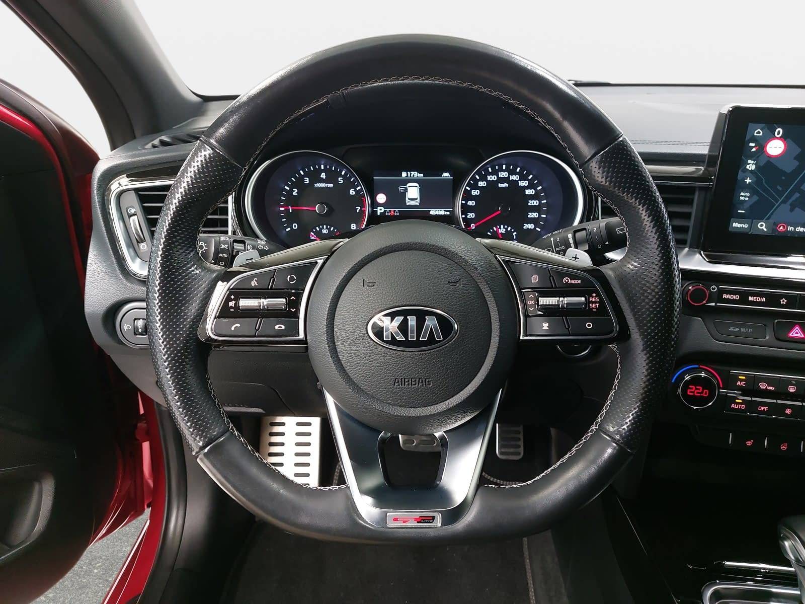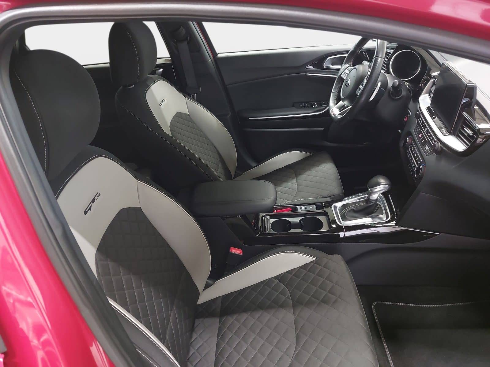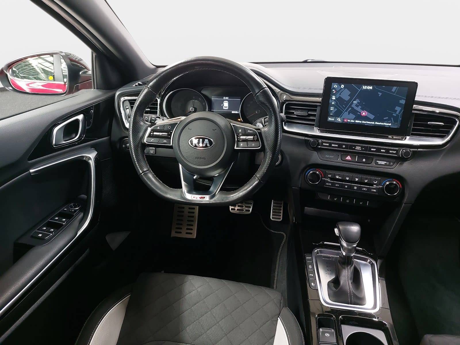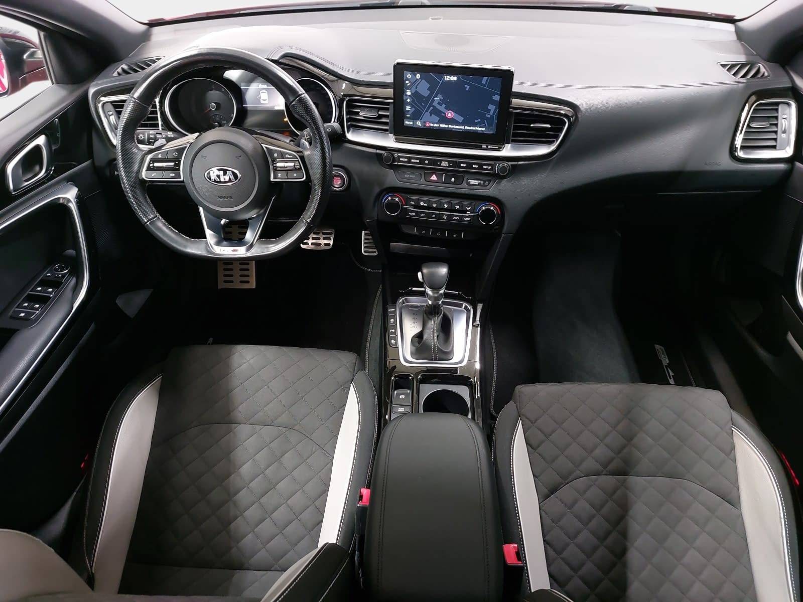 AusstattungSicherheitABS Airbag Einparkhilfe (Sensoren) Isofix Rückfahrkamera Seitenairbags Servolenkung Tagfahrlicht LED-Scheinwerfer Spurhalte Assistent Müdigkeitswarner Totwinkelwarner Abstandstempomat KomfortElektr. Fensterheber elektr. Stabilitätsprogramm (ESP) Klimaautomatik Lichtsensor Multifunktionslenkrad Navigationssystem Nebelscheinwerfer Regensensor Sitzheizung Start/Stopp Automatik Tempomat ExtrasDachreling Leichtmetallfelgen Sportpaket UnterhaltungBluetooth MP3-Schnittstelle Radio Beschreibung- 7 Jahre Herstellergarantie ab Meldung bei KIA - EcoDynamics (Start-Stopp-System – ISG) - Automatikgetriebe (7 Stufen) - Sitzheizung vorn - Sitzbezüge: Stoff-Leder-Kombination - Ottopartikelfilter (OPF) - Klimaautomatik, 2-Zonen - Fernlichtassistent - Parksensoren hinten - Parksensoren vorn - Regensensor - Rückfahrkamera - Smart-Key und Startknopf - Intelligentes Parksystem (PA-PDR) mit Einparkassistent zum Parallel- und Quereinparken sowie Parallelausparken - Schaltwippen - Frontscheinwerfer (LED) - LED-Tagfahrlicht vorn - LED-Tagfahrlicht hinten - Geschwindigkeitsregelanlage, adaptiv inkl. Stop&Go-Funktion (SCC mit S&G) - Stauassistent (Lane Follow Assit, LFA) - Subwoofer - Smartphone-Schnittstelle Android-Auto und Apple CarPlay mit Sprachsteuerung - Kia Kartennavigation (8 Zoll) inkl. 7-Jahre-Navigationskarten-Update und Kia Connected Services - JBL Premium Sound System - 2 Frontairbags - 2 Seitenairbags - 2 Vorhangairbags - Antiblockiersystem (ABS) mit elektronischer Bremskraftverteilung - Berganfahrhilfe (Hill-Start Assist Control, HAC) - Bremsassistent (BAS) - Elektronisches Stabilitätsprogramm (ESC) mit Traktionskontrolle (TCS) - Reifendruckkontrollsystem - Querverkehrwarner zur Erkennung von Fahrzeugen im toten Winkel beim Querausparken - aktiver Spurhalteassistent mit korrigierendem Lenkeingriff (Lane Keep Assist, LKA) - Spurwechselassistent mit Totwinkelwarner (Blind-Spot Collision Warning, BCW) - Verkehrszeichenerkennung für Geschwindigkeitsbegrenzung (Intelligent Speed Limit Warning, ISLW) - Frontkollisionswarner (Forward Collision Avoidance Assist, FCA) mit Bremseingriff und Fußgängererkennung - Ganzjahresreifen - Lederschaltknauf - Lenkrad beheizbar - Lederlenkrad mit abgeflachtem Lenkradkranz (D-Cut) - Drive Mode Select - Außenspiegel mit integrierten Blinkleuchten - Außenspiegel elektrisch einstellbar - Außenspiegel beheizbar - Außenspiegel elektrisch anklappbar - Bordcomputer - Dämmerungssensor - Elektrische Fensterheber mit Einklemmschutz vorn - Elektrische Fensterheber hinten - Nebelscheinwerfer - Parkbremse, elektronisch - Zentralverriegelung mit Funkfernbedienung - Elektrische Heckklappe, sensorgesteuert - Müdigkeitswarner (Driver Attention Warning, DAW) - 17-Zoll-Leichtmetallfelgen (Bereifung 225/45 R17) Design GT Line - USB-Schnellladeanschluss vorn - 2 Frontlautsprecher - 2 Hecklautsprecher - 2 Hochtöner vorn - Multifunktionslenkrad - USB- und AUX-Anschluss (für USB-Stick/MP3-Player) - Bluetooth-Freisprecheinrichtung - Digitaler Radioempfang (DAB+) - Center-Lautsprecher im Armaturenträger - Antibeschlagsensor der Klimaautomatik - Gurtwarnsystem hinten - Fahrer- und Beifahrersitz mit elektr. einstellb. Lendenwirbelstütze - Fahrersitz höhenverstellbar - Beifahrersitz höhenverstellbar - Chromeinfassung Seitenfenster - Dachheckspoiler - Dunkel getönte Scheiben ab B-Säule (Privacy Glass) - Stoßfänger in Wagenfarbe - Türgriffe in Wagenfarbe - Kühlergrill in Glanzschwarz und Chromrahmen - Getränkehalter vorne - Türöffner innen in Chromoptik - Dachhimmel und Säulenverkleidung in Schwarz - Induktive Ladestation für Smartphones - 16-Zoll-Bremsscheiben vorn - Energie-Regenerationssystem (AMS) - Sport-Frontschürze - 4,2-Zoll-Supervision-Instrumentenanzeige - Drittes Bremslicht (LED) im Heckspoiler - 12-Volt-Steckdose in der Zentralkonsole - 12-Volt-Steckdose im Gepäckraum - Einstiegsleisten aus Aluminium - Taschen an den Rückenlehnen der Vordersitze - Innenrückspiegel selbstabblendend - Gurtwarnsystem vorn - Kopfstützen an allen Sitzplätzen höhenverstellbar - Reifenreparaturset - Dachreling - Rückleuchten LED - Aluminium-Sportpedale - Dachkonsole vorn mit Brillenfach - Gepäcknetz - Gepäcknetzösen im Laderaum - Gepäckraum-Trennsystem - Gepäckraumabdeckung - Gepäckraumbeleuchtung - Fächer im Kofferraumboden - Mittelarmlehne vorne mit Staufach - Mittelarmlehne hinten mit integriertem Getränkehalter - Rücksitzbank asymmetrisch geteilt, umklappbar - Gepäckraumtrennnetz - Dachkonsole vorn mit Lesespots und zentraler Beleuchtung - Mittelarmlehne vorn verschiebbar - Servolenkung, elektronisch unterstützt - Zuheizer - Lüftungsdüsen hinten - Wischwasserdüsen beheizt - Dreipunkt-Sicherheitsgurte an allen Sitzplätzen - ISOFIX-Halterungen an äußeren Rücksitzen - Sicherheitsgurte vorn höhenverstellbar - Wegfahrsperre - Wärmeschutzverglasung - Außenspiegel in Hochglanzschwarz - Fußmattenset - Sonnenblenden mit Make-up-Spiegeln, beleuchtet