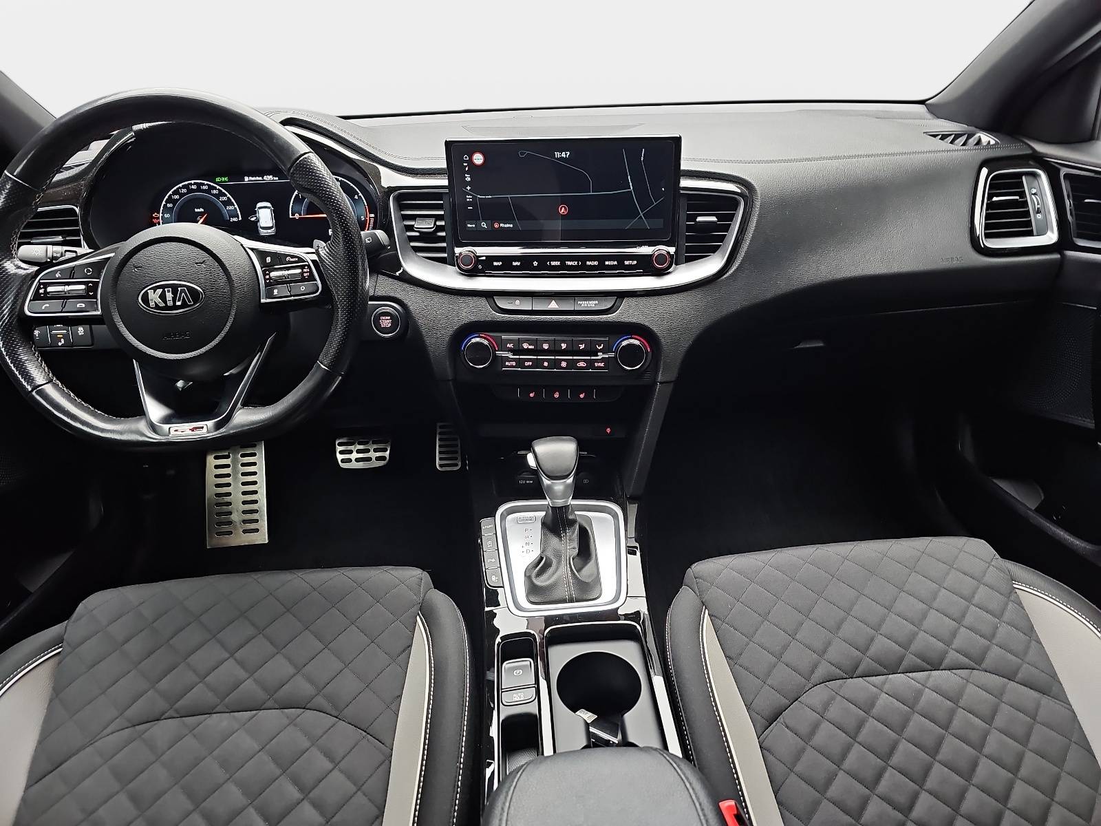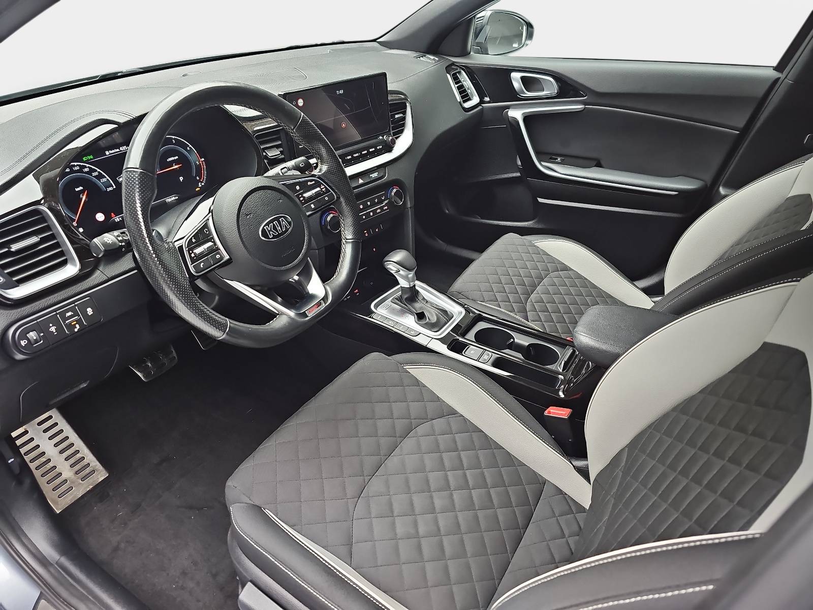 AusstattungSicherheitABS Airbag Alarmanlage Einparkhilfe (Sensoren) Isofix Rückfahrkamera Seitenairbags Servolenkung Tagfahrlicht LED-Scheinwerfer Spurhalte Assistent Müdigkeitswarner Totwinkelwarner Abstandstempomat KomfortElektr. Fensterheber elektr. Stabilitätsprogramm (ESP) Klimaautomatik Lichtsensor Multifunktionslenkrad Navigationssystem Nebelscheinwerfer Regensensor Sitzheizung Start/Stopp Automatik Tempomat ExtrasLeichtmetallfelgen Sportpaket UnterhaltungBluetooth MP3-Schnittstelle Radio Beschreibung- 7 Jahre Herstellergarantie ab Meldung bei KIA - EcoDynamics (Start-Stopp-System – ISG) - Automatikgetriebe (7 Stufen) - Digitales Cockpit mit 12,3-Zoll-HD-Display - Sitzheizung vorn - Sitzbezüge in Stoff-Leder-Kombination (mit hochwertiger Ledernachbildung): Bi-Color-Design in schwarz und grau - Dieselpartikelfilter - SCR (selektive katalytische Reduktion) - Klimaautomatik, 2-Zonen - Fernlichtassistent - Parksensoren hinten - Parksensoren vorn - Regensensor - Rückfahrkamera - Smart-Key und Startknopf - Intelligentes Parksystem (PA-PDR) mit Einparkassistent zum Parallel- und Quereinparken sowie Parallelausparken - Schaltwippen - Frontscheinwerfer (LED) - LED-Tagfahrlicht vorn - LED-Tagfahrlicht hinten - Geschwindigkeitsregelanlage, adaptiv inkl. Stop&Go-Funktion (SCC mit S&G) - Stauassistent (Lane Follow Assit, LFA) - Subwoofer - Smartphone-Schnittstelle Android-Auto und Apple CarPlay mit Sprachsteuerung - Online-Dienste UVO CONNECT mit Kia Live, Abruf von Fahrzeuginformationen über Kia UVO App - Kia Kartennavigation (10,25 Zoll) inkl. 7-Jahre-Navigationskarten-Update - Lederlenkrad, unten abgeflacht - JBL Premium Sound System - 2 Frontairbags - 2 Seitenairbags - 2 Vorhangairbags - Antiblockiersystem (ABS) mit elektronischer Bremskraftverteilung - Berganfahrhilfe (Hill-Start Assist Control, HAC) - Bremsassistent (BAS) - Elektronisches Stabilitätsprogramm (ESC) mit Traktionskontrolle (TCS) - Reifendruckkontrollsystem - Querverkehrwarner zur Erkennung von Fahrzeugen im toten Winkel beim Querausparken - aktiver Spurhalteassistent mit korrigierendem Lenkeingriff (Lane Keep Assist, LKA) - Spurwechselassistent mit Totwinkelwarner (Blind-Spot Collision Warning, BCW) - Verkehrszeichenerkennung für Geschwindigkeitsbegrenzung (Intelligent Speed Limit Warning, ISLW) - Frontkollisionswarner (Forward Collision Avoidance Assist, FCA) mit Bremseingriff und Fußgängererkennung - Diebstahlwarnanlage - Doppelkupplungsgetriebe - Lederschaltknauf - Lenkrad beheizbar - Drive Mode Select - Außenspiegel mit integrierten Blinkleuchten - Außenspiegel elektrisch einstellbar - Außenspiegel beheizbar - Außenspiegel elektrisch anklappbar - Bordcomputer - Dämmerungssensor - Elektrische Fensterheber mit Einklemmschutz vorn - Elektrische Fensterheber hinten - Nebelscheinwerfer - Parkbremse, elektronisch - Zentralverriegelung mit Funkfernbedienung - Müdigkeitswarner (Driver Attention Warning, DAW) - 17-Zoll-Leichtmetallfelgen (Bereifung 225/45 R17) Design GT Line - USB-Schnellladeanschluss vorn - 2 Frontlautsprecher - 2 Hecklautsprecher - 2 Hochtöner vorn - Dachantenne (Shark-Design) - Multifunktionslenkrad - Bluetooth-Freisprecheinrichtung - Digitaler Radioempfang (DAB+) - Center-Lautsprecher im Armaturenträger - USB-Anschluss - Antibeschlagsensor der Klimaautomatik - Gurtstraffer vorn - Gurtwarnsystem hinten - Fahrer- und Beifahrersitz mit elektr. einstellb. Lendenwirbelstütze - Fahrersitz höhenverstellbar - Beifahrersitz höhenverstellbar - Chromeinfassung Seitenfenster - Dachheckspoiler - Dunkel getönte Scheiben ab B-Säule (Privacy Glass) - Stoßfänger in Wagenfarbe - Türgriffe in Wagenfarbe - Kühlergrill in Glanzschwarz und Chromrahmen - Getränkehalter vorne - Türöffner innen in Chromoptik - Dachhimmel und Säulenverkleidung in Schwarz - Induktive Ladestation für Smartphones - Seitenschweller mit silberner Zierleiste - Heckstoßstange mit Diffusor - Bremsscheiben vorn in der Dimension 305x25 mm - Energie-Regenerationssystem (AMS) - Drittes Bremslicht (LED) im Heckspoiler - 12-Volt-Steckdose in der Zentralkonsole - 12-Volt-Steckdose im Gepäckraum - Einstiegsleisten aus Aluminium - Taschen an den Rückenlehnen der Vordersitze - Innenrückspiegel selbstabblendend - Gurtwarnsystem vorn - Kopfstützen an allen Sitzplätzen höhenverstellbar - Reifenreparaturset - Aluminium-Sportpedale - Dachkonsole vorn mit Brillenfach - Gepäcknetzösen im Laderaum - Gepäckraumbeleuchtung - Einsätze an Armaturenträger, Türverkleidung und Schaltkulisseneinfassung in Glanzschwarz - Mittelarmlehne hinten mit integriertem Getränkehalter - Rücksitzbank asymmetrisch geteilt, umklappbar - Mittelarmlehne vorn mit Ablagefach - Dachkonsole vorn mit Lesespots und zentraler Beleuchtung - variabler Gepäckraumboden - Mittelarmlehne vorn verschiebbar - Rückleuchten LED - Servolenkung, elektronisch unterstützt - Zuheizer - Lüftungsdüsen hinten - Wischwasserdüsen beheizt - Dreipunkt-Sicherheitsgurte an allen Sitzplätzen - ISOFIX-Halterungen an äußeren Rücksitzen - Sicherheitsgurte vorn höhenverstellbar - Wegfahrsperre - Wärmeschutzverglasung - Außenspiegel in Hochglanzschwarz - Fußmattenset - Sonnenblenden mit Make-up-Spiegeln, beleuchtet