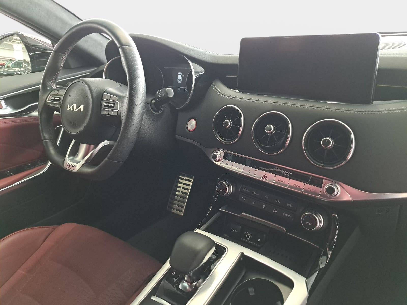 AusstattungSicherheitABS Airbag Isofix Kurvenlicht Rückfahrkamera Seitenairbags Servolenkung Tagfahrlicht LED-Scheinwerfer Spurhalte Assistent Müdigkeitswarner Abstandstempomat KomfortElektr. Fensterheber elektr. Stabilitätsprogramm (ESP) Elektrische Sitze Head-Up-Display Klimaautomatik Lichtsensor Multifunktionslenkrad Navigationssystem Regensensor Sitzheizung Start/Stopp Automatik Tempomat ExtrasLeichtmetallfelgen Sportpaket UnterhaltungBluetooth MP3-Schnittstelle Radio Beschreibung- Fahrassistenz-System: Verkehrszeichenerkennung - Fahrwerksdämpfung elektronisch geregelt (ECS) - Fensterheber elektrisch vorne und hinten - Telefon: Freisprecheinrichtung (Bluetooth) mit Sprachsteuerung - Gegenlenkunterstützung (Vehicle Stability Management, VSM) - Getriebe: Automatik - (8-Stufen) - Head-up-Display (Frontsichtanzeige) - Heckklappenöffnung elektr. - LED Heckleuchten - Heckscheibe heizbar - Telefon: Induktionsladeschale für Smartphone - Isofix-Aufnahmen für Kindersitz - Paket: Parken - Einparkhilfe vorn und hinten - Rückfahrkamera - Kamerasystem Around View - Klimaautomatik 2-Zonen - Airbag: Knieairbag Fahrerseite - Airbag: Kopf-Airbag-System vorn und hinten - Sitze: Lendenwirbelstütze Sitz vorn rechts - Lenkung: Lenkrad (Leder) mit Multifunktion und Schaltwippen - heizbar - Lenkung: Lenksäule (Lenkrad) elektr. verstellbar mit Memory - Räder: LM-Felgen mit Reifen 225/40 R19 - Mittelarmlehne vorne und hinten - Modellpflege - Nebelschlussleuchte LED - Otto-Partikelfilter (OPF) - Parkbremse elektrisch - Räder: Reifen-Reparaturset - Räder: Reifendruck-Kontrollsystem - Rücksitzlehne geteilt/klappbar - Schadstoffarm nach Abgasnorm Euro 6d - Paket: Sicht - Licht-/Regensensor - Innenspiegel mit Abblendautomatik - Schließ-/Startsystem Smart-Key - Airbag: Seitenairbag - Servolenkung (Aktiv) - Sitze: Sitz vorn links mit elektrisch verstellbaren Seitenwangen - Sitze: Sitzbelüftung vorn - Sitzbezug / Polsterung: Leder Nappa - Sitze: Sitze vorn elektr. verstellbar (links mit Memory) - Paket: Winter - Sitzheizung vorne und hinten - Lenkrad heizbar - Audiosystem: Sound-System Harman-Kardon - Sperrdifferential (Hinterachse) - Start/Stop-Anlage (ISG) - USB-Anschluss + AUX-IN-Anschluss - Wegfahrsperre - Zentralverriegelung mit Fernbedienung - Navigationssystem KIA (10,25 Zoll) - Mobile Online Dienste UVO Connect / Kia Connect - Ausstattung GT - Außenspiegel elektr. verstell- und heizbar, anklappbar - verchromt - integrierter LED-Blinker - Außenspiegel mit Abblendautomatik - LED-Bi-Scheinwerfer mit aktivem Kurvenlicht - Bremsanlage: Brembo - Bremsassistent - Audiosystem: DAB-Tuner (Radioempfang digital) - Einschaltautomatik für Fahrlicht - Elektron. Stabilitäts-Programm (ESP / ESC) - Fahrassistenz-System: Antriebsmomentkontrolle (Torque Vectoring) - Fahrassistenz-System: Spurhalteassistent (LDWS, Lane Departure Warning System) - Fahrassistenz-System: Spurwechselassistent - Außenspiegel mit BLIS (Blind Spot Informations System) - Fahrassistenz-System: Frontkollisionswarnung - Fahrassistenz-System: Müdigkeitserkennungs-Sensor (Driver Attention Warning, DAW) - Fahrassistenz-System: Querverkehrs-Assistent (Rear Cross Traffic Collision Warning, RCCW) - Fahrassistenz-System: Berganfahr-Assistent - Fahrassistenz-System: Fahrprofilauswahl (Drive Mode) - Fahrassistenz-System: Fernlichtassistent - Lackierung: Metallic-Lackierung - Adaptive Geschwindigkeits-Regelanlage mit StopGo-Funktion - Geschwindigkeits-Begrenzeranlage - Airbag Beifahrerseite abschaltbar - Airbag: Fahrer-/Beifahrerseite - Airbag Beifahrerseite abschaltbar - Aktive Motorhaube - Aktives Bremslicht (ESS) - Anti-Blockier-System (ABS) - Antriebsart: Allradantrieb