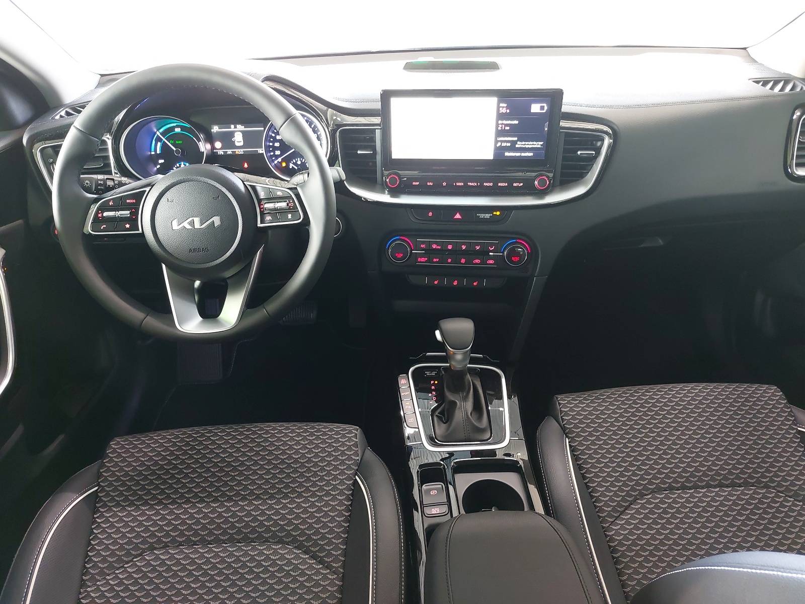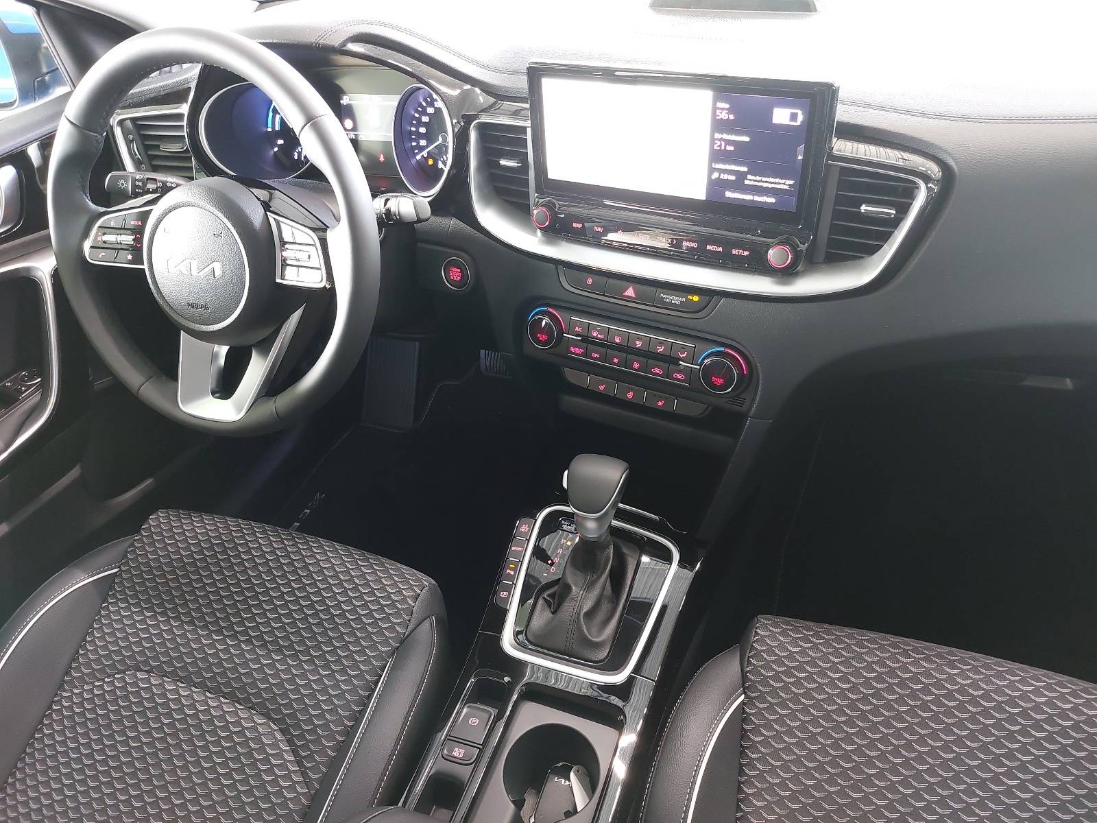 AusstattungSicherheitABS Airbag Alarmanlage Isofix Rückfahrkamera Seitenairbags Servolenkung Tagfahrlicht LED-Scheinwerfer Spurhalte Assistent Müdigkeitswarner Totwinkelwarner Abstandstempomat KomfortElektr. Fensterheber elektr. Stabilitätsprogramm (ESP) Klimaautomatik Lichtsensor Multifunktionslenkrad Navigationssystem Nebelscheinwerfer Regensensor Sitzheizung Start/Stopp Automatik Tempomat ExtrasLeichtmetallfelgen UnterhaltungBluetooth MP3-Schnittstelle Radio Beschreibung@ Reduzierte Dienstwagenbesteuerung (0,5%) möglich! - 7 Jahre Herstellergarantie ab Meldung bei KIA - EcoDynamics (Start-Stopp-System – ISG) - Sitzheizung vorn - Sitzbezüge in Stoff-Leder-Kombination (inklusive hochwertiger Ledernachbildung) - Ottopartikelfilter (OPF) - Klimaautomatik, 2-Zonen, mit Antibeschlagsensor - Fernlichtassistent - Parksensoren hinten - Regensensor - Rückfahrkamera - Smart-Key und Startknopf - Frontscheinwerfer (LED) - LED-Tagfahrlicht vorn - LED-Tagfahrlicht hinten - Geschwindigkeitsregelanlage, adaptiv inkl. Stop&Go-Funktion (SCC mit S&G) - Geschwindigkeitsregelanlage, navigationsbasiert (NSCC) - Spurfolgeassistent (Lane Follow Assit, LFA) - Smartphone-Schnittstelle Android-Auto und Apple CarPlay mit Sprachsteuerung - Online-Dienste Kia Connect mit Kia Live (u.a. Verkehrsinformationen in Echtzeit, Wettervorhersage, lokale Suche, Parkmöglichkeiten) sowie Möglichkeit zum Abruf von Fahrzeuginformationen und Steuern von Fahrzeugfunktionen über die Kia Connect App - Kia Kartennavigation mit 26 cm (10,25 Zoll) Bildschirmdiagonale inkl. 2 "Over-the-Air"-Updates und 7-Jahre-Navigationskarten-Update - 2 Frontairbags - 2 Seitenairbags - 2 Vorhangairbags - Aktives Bremslicht (Emergency Stop Signal, ESS) - Antiblockiersystem (ABS) mit elektronischer Bremskraftverteilung - Berganfahrhilfe (Hill-Start Assist Control, HAC) - Bremsassistent (BAS) - Elektronisches Stabilitätsprogramm (ESC) mit Traktionskontrolle (TCS) - aktiver Spurhalteassistent mit korrigierendem Lenkeingriff (Lane Keep Assist, LKA) - Verkehrszeichenerkennung für Geschwindigkeitsbegrenzung (Intelligent Speed Limit Warning, ISLW) - Diebstahlwarnanlage - Virtuelles Motorsoundsystem (Virtual Engine Sound System, VESS) zum Fußgängerschutz - Frontkollisionswarner (Forward Collision Avoidance Assist, FCA) mit Bremseingriff, Fußgängererkennung und Warnung durch Lenkradvibration - Reifendruckkontrollsystem mit Druckanzeige für jedes Rad im Display des Bordcomputers - Aktiver Totwinkelassistent mit Lenk- und Bremseingriff (BCA) - Autobahnassistent (HDA) - Insassenalarm (Rear Seat Alert, RSA) - Querverkehrwarner zur Erkennung von Fahrzeugen im toten Winkel beim Querausparken, mit Notbremsfunktion (RCCA) - Lederlenkrad - Lenkrad beheizbar - Drive Mode Select - Außenspiegel mit integrierten Blinkleuchten - Außenspiegel elektrisch einstellbar - Außenspiegel beheizbar - Außenspiegel elektrisch anklappbar - Bordcomputer - Dämmerungssensor - Elektrische Fensterheber mit Einklemmschutz vorn - Elektrische Fensterheber mit Einklemmschutz hinten - Parkbremse, elektronisch - Zentralverriegelung mit Funkfernbedienung - Nebelscheinwerfer LED - Müdigkeitswarner (Driver Attention Warning, DAW) - 16-Zoll-Leichtmetallfelgen - Ausstiegsassistent (Safe Exit Warner, SEW) - Ladekabel (Schutzkontaktstecker auf Typ 2 Stecker) - 2 Frontlautsprecher - 2 Hecklautsprecher - 2 Hochtöner vorn - Multifunktionslenkrad - Bluetooth-Freisprecheinrichtung - Digitaler Radioempfang (DAB+) - USB-Anschluss - Gurtwarnsystem hinten - Fahrersitz höhenverstellbar - Fahrersitz mit elektr. einstellbarer Lendenwirbelstütze - Beifahrersitz höhenverstellbar - Beifahrersitz mit elektr. einstellbarer Lendenwirbelstütze - Außenspiegel in Wagenfarbe - Getränkehalter vorne - Energie-Regenerationssystem (AMS) - 4,2-Zoll-Supervision-Instrumentenanzeige - Drittes Bremslicht (LED) im Heckspoiler - 12-Volt-Steckdose in der Zentralkonsole - 12-Volt-Steckdose im Gepäckraum - Einstiegsleisten aus Aluminium - Innenrückspiegel selbstabblendend - Gurtwarnsystem vorn - Kopfstützen an allen Sitzplätzen höhenverstellbar - Reifenreparaturset - Rückleuchten LED - Dachkonsole vorn mit Brillenfach - Gepäcknetzösen im Laderaum - Gepäckraumbeleuchtung - Einsätze an Armaturenträger, Türverkleidung und Schaltkulisseneinfassung in Glanzschwarz - Mittelarmlehne hinten mit integriertem Getränkehalter - Rücksitzbank asymmetrisch geteilt, umklappbar - Mittelarmlehne vorn mit Ablagefach - Dachkonsole vorn mit Lesespots und zentraler Beleuchtung - Servolenkung, elektronisch unterstützt - Dreipunkt-Sicherheitsgurte an allen Sitzplätzen - ISOFIX-Halterungen an äußeren Rücksitzen - Sicherheitsgurte vorn höhenverstellbar - Wegfahrsperre - Wärmeschutzverglasung - Fußmattenset - Sonnenblenden mit Make-up-Spiegeln, beleuchtet