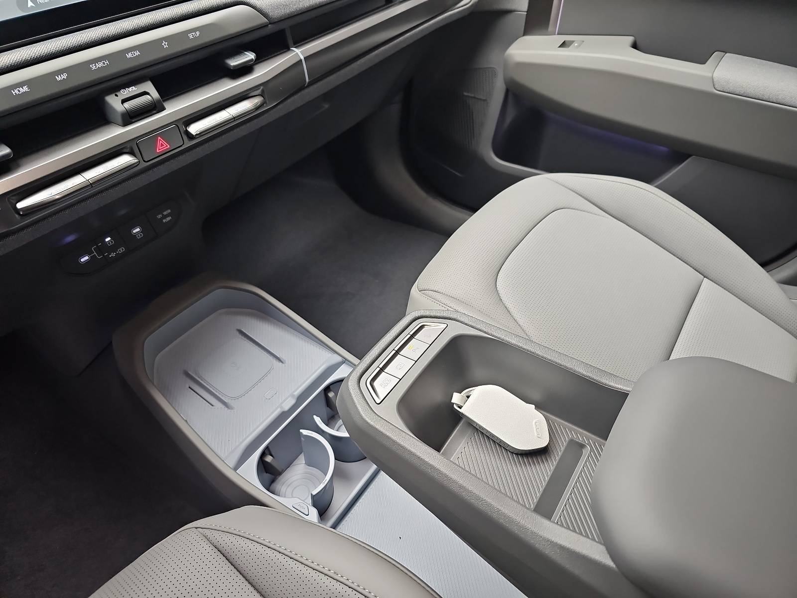 - USB-C-Anschluss, Ladebuchse und 12-V-Steckdose in der Zentralkonsole