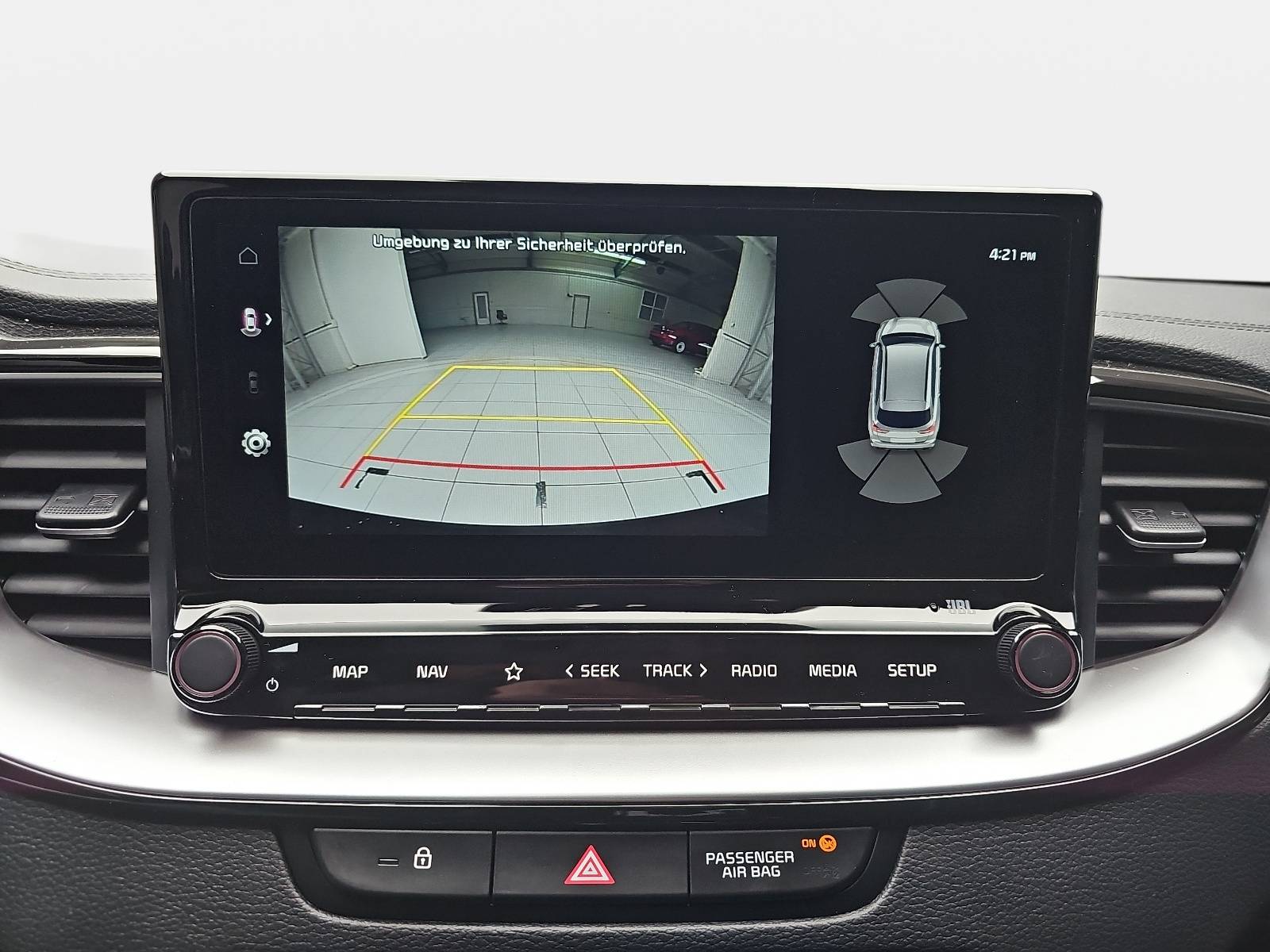 - Querverkehrwarner zur Erkennung von Fahrzeugen im toten Winkel beim Querausparken, mit Notbremsfunktion (RCCA)