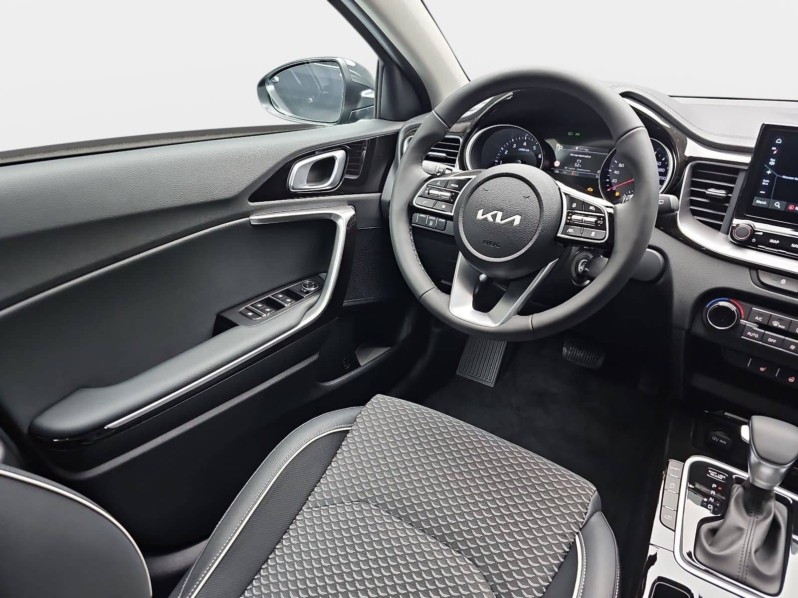 AusstattungSicherheitABS Airbag Alarmanlage Isofix Rückfahrkamera Seitenairbags Servolenkung Tagfahrlicht LED-Scheinwerfer Spurhalte Assistent Müdigkeitswarner Abstandstempomat KomfortElektr. Fensterheber elektr. Stabilitätsprogramm (ESP) Klimaautomatik Lichtsensor Multifunktionslenkrad Navigationssystem Nebelscheinwerfer Regensensor Sitzheizung Start/Stopp Automatik Tempomat ExtrasLeichtmetallfelgen UnterhaltungBluetooth MP3-Schnittstelle Radio Beschreibung- 7 Jahre Herstellergarantie ab Meldung bei KIA - EcoDynamics (Start-Stopp-System – ISG) - Automatikgetriebe (7 Stufen) - Sitzheizung vorn - Sitzbezüge in Stoff-Leder-Kombination (inklusive hochwertiger Ledernachbildung) - Ottopartikelfilter (OPF) - Klimaautomatik, 2-Zonen, mit Antibeschlagsensor - Fernlichtassistent - Parksensoren hinten - Regensensor - Rückfahrkamera - Geschwindigkeitsbegrenzer - Frontscheinwerfer (LED) - LED-Tagfahrlicht vorn - LED-Tagfahrlicht hinten - Geschwindigkeitsregelanlage, adaptiv und navigationsbasiert, inkl. Stopp&Go-Funktion (SCC mit S&G) - Spurfolgeassistent (Lane Follow Assit, LFA) - Smartphone-Schnittstelle Android-Auto und Apple CarPlay mit Sprachsteuerung - Online-Dienste Kia Connect mit Kia Live (u.a. Verkehrsinformationen in Echtzeit, Wettervorhersage, lokale Suche, Parkmöglichkeiten) sowie Möglichkeit zum Abruf von Fahrzeuginformationen und Steuern von Fahrzeugfunktionen über die Kia Connect App - Kia Kartennavigation mit 26 cm (10,25 Zoll) Bildschirmdiagonale inkl. 2 "Over-the-Air"-Updates und 7-Jahre-Navigationskarten-Update - 2 Frontairbags - 2 Seitenairbags - 2 Vorhangairbags - Aktives Bremslicht (Emergency Stop Signal, ESS) - Antiblockiersystem (ABS) mit elektronischer Bremskraftverteilung - Berganfahrhilfe (Hill-Start Assist Control, HAC) - Bremsassistent (BAS) - Elektronisches Stabilitätsprogramm (ESC) mit Traktionskontrolle (TCS) - Reifendruckkontrollsystem - aktiver Spurhalteassistent mit korrigierendem Lenkeingriff (Lane Keep Assist, LKA) - Frontkollisionswarner (Forward Collision Avoidance Assist, FCA) mit Bremseingriff und Fußgängererkennung - Diebstahlwarnanlage - Autobahnassistent (HDA) - Intelligenter Geschwindigkeitsassistent (ISLA) - Insassenalarm (Rear Seat Alert, RSA) - Doppelkupplungsgetriebe - Frontkollisionswarner, erweitert um Abbiegefunktion (Forward Collision Avoidance Assist, Junction Turning FCA-JT) - Lederlenkrad - Lenkrad beheizbar - Kunstlederschaltknauf - Drive Mode Select - Außenspiegel elektrisch einstellbar - Außenspiegel beheizbar - Bordcomputer - Dämmerungssensor - Elektrische Fensterheber mit Einklemmschutz vorn - Elektrische Fensterheber mit Einklemmschutz hinten - Parkbremse, elektronisch - Zentralverriegelung mit Funkfernbedienung - Nebelscheinwerfer LED - Müdigkeitswarner (Driver Attention Warning, DAW) - 18-Zoll-Leichtmetallfelgen - 2 Frontlautsprecher - 2 Hecklautsprecher - 2 Hochtöner vorn - Multifunktionslenkrad - Bluetooth-Freisprecheinrichtung - Digitaler Radioempfang (DAB+) - USB-Anschluss - Gurtwarnsystem hinten - Fahrersitz höhenverstellbar - Fahrersitz mit elektr. einstellbarer Lendenwirbelstütze - Beifahrersitz höhenverstellbar - Beifahrersitz mit elektr. einstellbarer Lendenwirbelstütze - Außenspiegel in Wagenfarbe - Getränkehalter vorne - Dachhimmel und Säulenverkleidung in Grau - Energie-Regenerationssystem (AMS) - 4,2-Zoll-Supervision-Instrumentenanzeige - Drittes Bremslicht (LED) im Heckspoiler - 12-Volt-Steckdose in der Zentralkonsole - 12-Volt-Steckdose im Gepäckraum - Einstiegsleisten aus Aluminium - Innenrückspiegel selbstabblendend - Gurtwarnsystem vorn - Kopfstützen an allen Sitzplätzen höhenverstellbar - Reifenreparaturset - Rückleuchten LED - Dachkonsole vorn mit Brillenfach - Gepäcknetzösen im Laderaum - Gepäckraumbeleuchtung - Mittelarmlehne hinten mit integriertem Getränkehalter - Rücksitzbank asymmetrisch geteilt, umklappbar - Mittelarmlehne vorn mit Ablagefach - Dachkonsole vorn mit Lesespots und zentraler Beleuchtung - Mittelarmlehne vorn verschiebbar - Servolenkung, elektronisch unterstützt - Dreipunkt-Sicherheitsgurte an allen Sitzplätzen - ISOFIX-Halterungen an äußeren Rücksitzen - Sicherheitsgurte vorn höhenverstellbar - Wegfahrsperre - Wärmeschutzverglasung - Fußmattenset - Sonnenblenden mit Make-up-Spiegeln, beleuchtet
