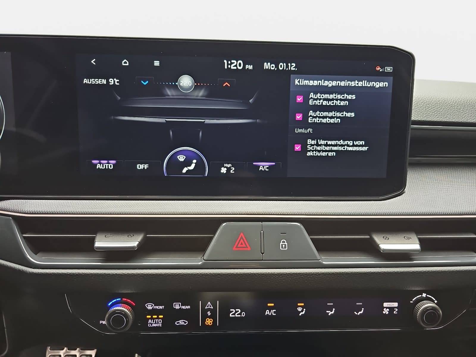 AusstattungSicherheitABS Airbag Isofix Rückfahrkamera Seitenairbags Servolenkung Tagfahrlicht LED-Scheinwerfer Spurhalte Assistent Müdigkeitswarner Totwinkelwarner Abstandstempomat KomfortElektr. Fensterheber elektr. Stabilitätsprogramm (ESP) Klimaautomatik Lichtsensor Multifunktionslenkrad Navigationssystem Nebelscheinwerfer Regensensor Sitzheizung Start/Stopp Automatik Tempomat ExtrasDachreling Leichtmetallfelgen Sportpaket UnterhaltungBluetooth MP3-Schnittstelle Radio Beschreibung- 7 Jahre Herstellergarantie ab Meldung bei KIA - EcoDynamics (Start-Stopp-System – ISG) - Automatikgetriebe (7 Stufen) - 48 V-Bordnetz (Mild-Hybrid) - Tagfahrlicht LED - Digitales Cockpit mit 12,3-Zoll-HD-Display - Digital Key 2.0 (Verwenden des eigenen Smartphones als Fahrzeugschlüssel) - Sitzheizung vorn - Privacy-Verglasung (dunkel getönte Scheiben ab B-Säule) - Sitzbezüge in Kombination Stoff-Ledernachbildung, Schwarz-Weiß - Ottopartikelfilter (OPF) - Klimaautomatik - Fernlichtassistent - Parksensoren hinten - Parksensoren vorn - Regensensor - Rückfahrkamera - Smart-Key und Startknopf - Geschwindigkeitsregelanlage (Tempomat) - Geschwindigkeitsbegrenzer - Frontscheinwerfer (LED) - Geschwindigkeitsregelanlage, adaptiv inkl. Stop&Go-Funktion (SCC mit S&G) - Spurfolgeassistent (Lane Follow Assit, LFA) - Apple Car Play, Android Auto - Online-Dienste Kia Connect mit Kia Live (u.a. Verkehrsinformationen in Echtzeit, Wettervorhersage, lokale Suche, Parkmöglichkeiten) sowie Möglichkeit zum Abruf von Fahrzeuginformationen und Steuern von Fahrzeugfunktionen über die Kia Connect App - Kia Kartennavigation mit 31,2 cm (12,3 Zoll) Bildschirmdiagonale inkl. 2 "Over-the-Air"-Updates und 7-Jahre-Navigationskarten-Update - 2 Frontairbags - 2 Seitenairbags - 2 Vorhangairbags - Aktives Bremslicht (Emergency Stop Signal, ESS) - Antiblockiersystem (ABS) mit elektronischer Bremskraftverteilung - Berganfahrhilfe (Hill-Start Assist Control, HAC) - Bremsassistent (BAS) - Gegenlenkunterstützung (VSM) - Reifendruckkontrollsystem - aktiver Spurhalteassistent mit korrigierendem Lenkeingriff (Lane Keep Assist, LKA) - Elektr. Stabilitätsprogramm (ESC) mit Traktionskontrolle (TCS), bremsbasierter Drehmomentoptimierung (TVBB), Bremsstabilisierung im Geradeauslauf (SLS), Kurvenbremskontrolle (CBC) - Aktiver Totwinkelassistent mit Lenk- und Bremseingriff (BCA) - Autobahnassistent (HDA) - Intelligenter Geschwindigkeitsassistent (ISLA) - Multikollisionsbremse (MCB) - Doppelkupplungsgetriebe - Querverkehrwarner zur Erkennung von Fahrzeugen im toten Winkel beim Querausparken, mit Notbremsfunktion (RCCA) - Frontkollisionswarner 1.5 (Forward Collision Avoidance Assist, Junction Turning, FCA-JT): Fahrzeuge, Fußgänger, Fahrradfahrer, inkl. Abbiegefunktion - Lenkrad beheizbar - Beifahrerairbag abschaltbar - Drive Mode Select - Außenspiegel mit integrierten Blinkleuchten - Elektrische Fensterheber mit Impulsfunktion auf der Fahrerseite - Außenspiegel elektrisch einstellbar - Außenspiegel beheizbar - Außenspiegel elektrisch anklappbar - Bordcomputer - Dämmerungssensor - Elektrische Fensterheber mit Einklemmschutz vorn - Elektrische Fensterheber hinten - Komfortblinker (One Touch) - Zentralverriegelung mit Funkfernbedienung - Nebelscheinwerfer LED - Parkbremse, elektronisch mit Auto-Hold-Funktion - Müdigkeitswarner (Driver Attention Warning, DAW) - 17-Zoll-Leichtmetallfelgen Design GT LINE - Ausstiegsassistent (Safe Exit Warner, SEW) - 2 Frontlautsprecher - 2 Hecklautsprecher - 2 Hochtöner vorn - Dachantenne (Shark-Design) - Digitaler Radioempfang (DAB+) - USB-Anschluss - USB-Ladebuchse in der Zentralkonsole - Bluetooth Freisprecheinrichtung mit Spracherkennung - Multifunktionslenkrad GT-Line (3 Speichen) - Gurtstraffer vorn - Gurtwarnsystem hinten - Fahrersitz höhenverstellbar - Beifahrersitz höhenverstellbar - Türgriffe in Wagenfarbe - Getränkehalter vorne - Getränkehalter hinten - Innentürgriffe in satiniertem Chrom - Lenkrad höhenverstellbar - Lenkrad tiefenverstellbar - Induktive Ladestation für Smartphones - Außenspiegel Klavierlackschwarz - Sport-Front- und Heckstoßfänger GT-LINE - Energie-Regenerationssystem (AMS) - 12-Volt-Steckdose in der Zentralkonsole - Tasche an der Rückenlehne des Beifahrersitzes - Innenrückspiegel selbstabblendend - Gurtwarnsystem vorn - Kopfstützen an allen Sitzplätzen höhenverstellbar - Kopfstützen vorne neigungsverstellbar - Reifenreparaturset - Dachreling - Rückleuchten LED - Solarglas-Frontscheibe - Ablagefächer in Türverkleidungen vorn - Aluminium-Sportpedale - Dachkonsole vorn mit Brillenfach - Gepäcknetzösen im Laderaum - Gepäckraumabdeckung - Gepäckraumbeleuchtung - Gepäckraumboden herausnehmbar - Mittelarmlehne vorne mit Staufach - Rücksitzlehne asymmetrisch geteilt, umklappbar - Dachkonsole vorn mit Lesespots und zentraler Beleuchtung - Servolenkung, elektronisch unterstützt - USB-Ladebuchse in der Tunnelkonsole hinten - Ambientebeleuchtung - 2 weitere USB-Ladebuchsen in der Tunnelkonsole hinten - Dreipunkt-Sicherheitsgurte an allen Sitzplätzen - ISOFIX-Halterungen an äußeren Rücksitzen - Sicherheitsgurte vorn höhenverstellbar - Wegfahrsperre - Wärmeschutzverglasung - Fußmattenset - Innenraumbeleuchtung - Sonnenblenden mit Make-up-Spiegeln, beleuchtet