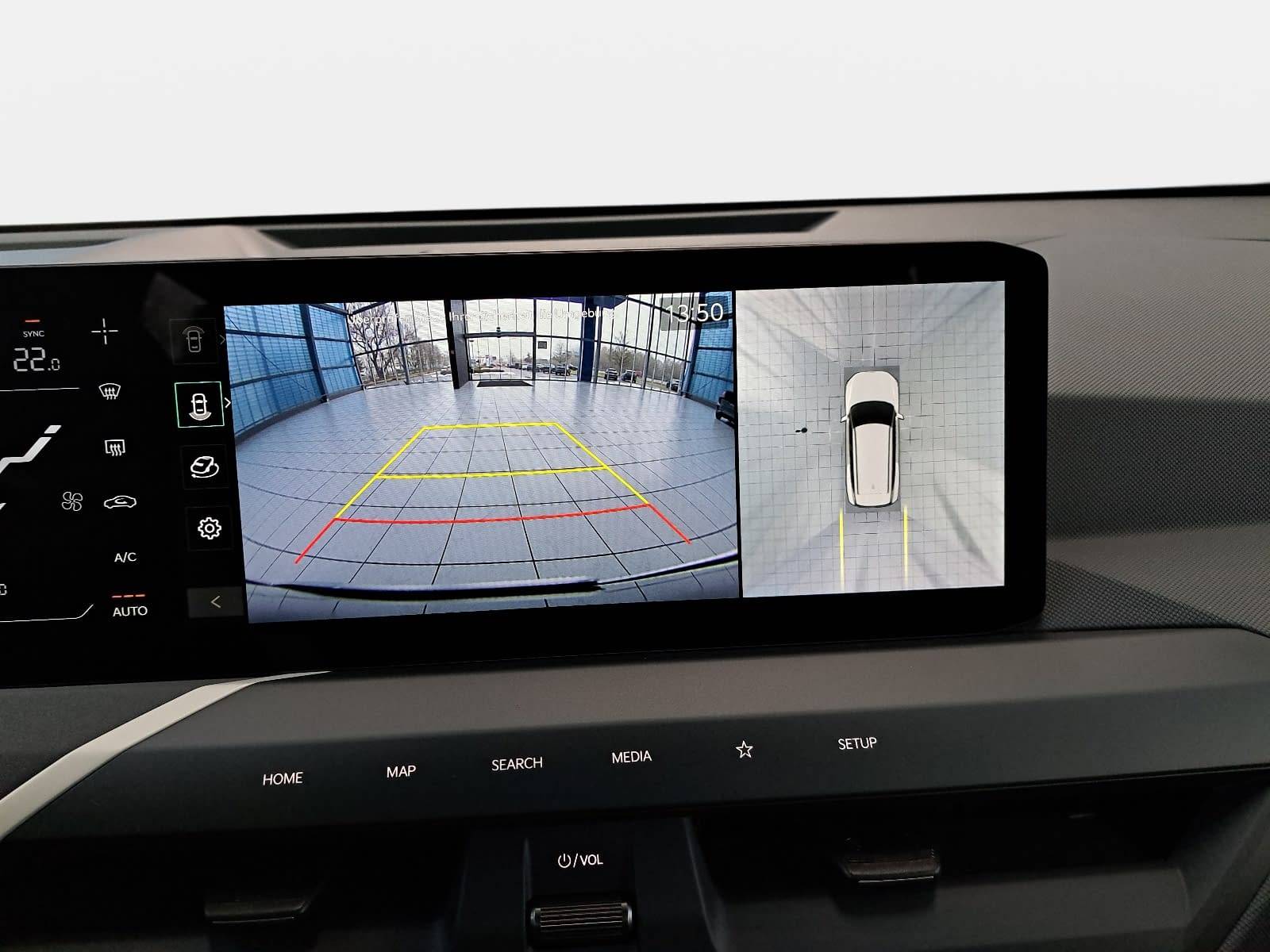 - Aktiver Totwinkelassistent mit Lenk- und Bremseingriff (BCA) inkl. Querverkehrwarner hinten inkl. Notbremsfunktion (RCCA) und Ausstiegsassistent (SEA)