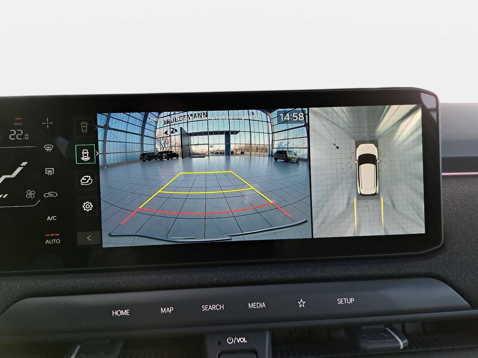 - Aktiver Totwinkelassistent mit Lenk- und Bremseingriff (BCA) inkl. Querverkehrwarner hinten inkl. Notbremsfunktion (RCCA) und Ausstiegsassistent (SEA)