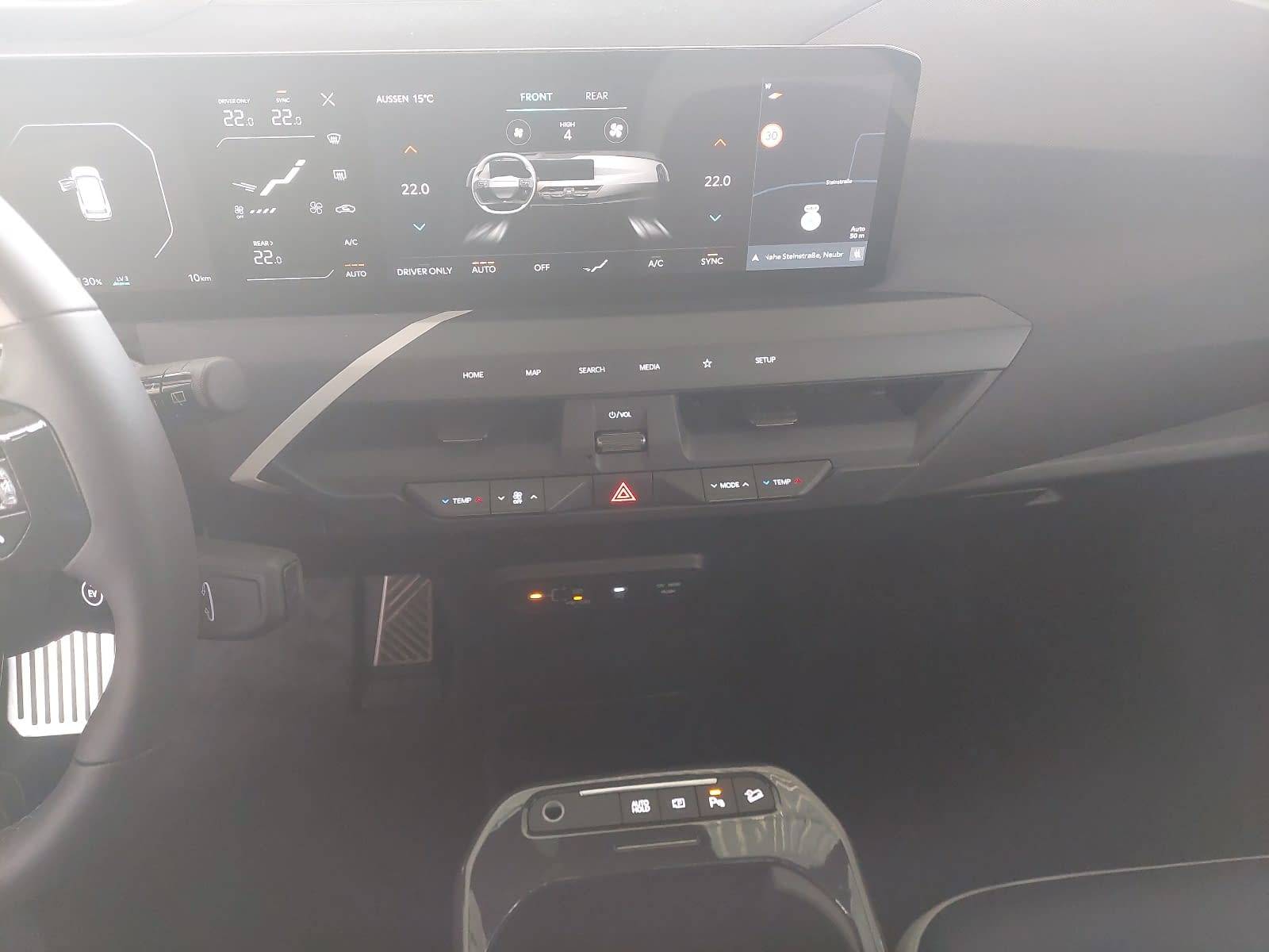 - USB-C-Anschluss, Ladebuchse und 12-V-Steckdose in der Zentralkonsole
