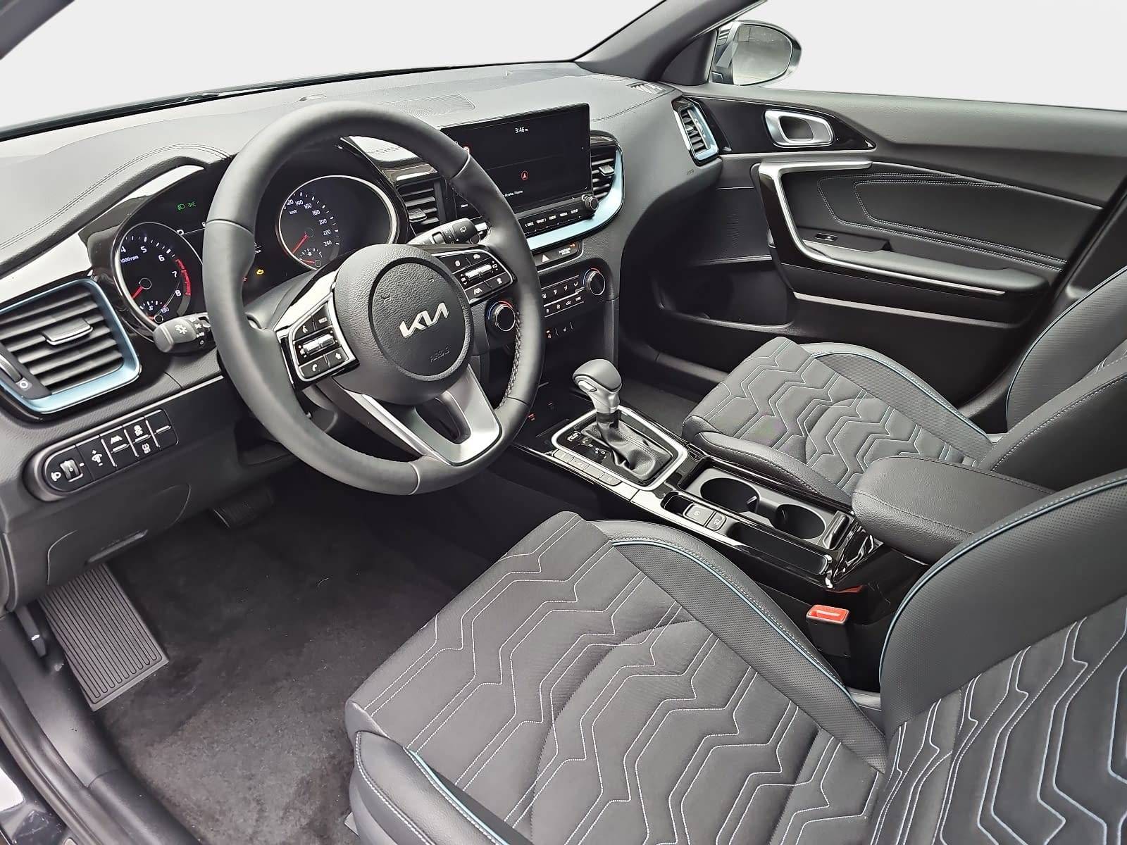 AusstattungSicherheitABS Airbag Alarmanlage Isofix Rückfahrkamera Seitenairbags Servolenkung Tagfahrlicht LED-Scheinwerfer Spurhalte Assistent Müdigkeitswarner Abstandstempomat KomfortElektr. Fensterheber elektr. Stabilitätsprogramm (ESP) Klimaautomatik Lichtsensor Multifunktionslenkrad Navigationssystem Nebelscheinwerfer Regensensor Sitzheizung Start/Stopp Automatik Tempomat ExtrasLeichtmetallfelgen UnterhaltungBluetooth MP3-Schnittstelle Radio Beschreibung- 7 Jahre Herstellergarantie ab Meldung bei KIA - EcoDynamics (Start-Stopp-System – ISG) - Automatikgetriebe (7 Stufen) - Sitzheizung vorn - Privacy-Verglasung (dunkel getönte Scheiben ab B-Säule) - Sitzbezüge in Stoff-Leder-Kombination (mit hochwertiger Ledernachbildung): Schwarz mit Farb-Applikationen in Yucca Stahlgrau - Ottopartikelfilter (OPF) - Klimaautomatik, 2-Zonen, mit Antibeschlagsensor - Fernlichtassistent - Parksensoren hinten - Regensensor - Rückfahrkamera - Geschwindigkeitsbegrenzer - Frontscheinwerfer (LED) - LED-Tagfahrlicht vorn - LED-Tagfahrlicht hinten - Geschwindigkeitsregelanlage, adaptiv und navigationsbasiert, inkl. Stopp&Go-Funktion (SCC mit S&G) - Spurfolgeassistent (Lane Follow Assit, LFA) - Smartphone-Schnittstelle Android-Auto und Apple CarPlay mit Sprachsteuerung - Online-Dienste Kia Connect mit Kia Live (u.a. Verkehrsinformationen in Echtzeit, Wettervorhersage, lokale Suche, Parkmöglichkeiten) sowie Möglichkeit zum Abruf von Fahrzeuginformationen und Steuern von Fahrzeugfunktionen über die Kia Connect App - Kia Kartennavigation mit 26 cm (10,25 Zoll) Bildschirmdiagonale inkl. 2 "Over-the-Air"-Updates und 7-Jahre-Navigationskarten-Update - 2 Frontairbags - 2 Seitenairbags - 2 Vorhangairbags - Aktives Bremslicht (Emergency Stop Signal, ESS) - Antiblockiersystem (ABS) mit elektronischer Bremskraftverteilung - Berganfahrhilfe (Hill-Start Assist Control, HAC) - Bremsassistent (BAS) - Elektronisches Stabilitätsprogramm (ESC) mit Traktionskontrolle (TCS) - Reifendruckkontrollsystem - aktiver Spurhalteassistent mit korrigierendem Lenkeingriff (Lane Keep Assist, LKA) - Frontkollisionswarner (Forward Collision Avoidance Assist, FCA) mit Bremseingriff und Fußgängererkennung - Diebstahlwarnanlage - Autobahnassistent (HDA) - Intelligenter Geschwindigkeitsassistent (ISLA) - Insassenalarm (Rear Seat Alert, RSA) - Doppelkupplungsgetriebe - Frontkollisionswarner, erweitert um Abbiegefunktion (Forward Collision Avoidance Assist, Junction Turning FCA-JT) - Lederlenkrad - Lenkrad beheizbar - Kunstlederschaltknauf - Drive Mode Select - Außenspiegel mit integrierten Blinkleuchten - Außenspiegel elektrisch einstellbar - Außenspiegel beheizbar - Außenspiegel elektrisch anklappbar - Bordcomputer - Dämmerungssensor - Elektrische Fensterheber mit Einklemmschutz vorn - Elektrische Fensterheber mit Einklemmschutz hinten - Parkbremse, elektronisch - Zentralverriegelung mit Funkfernbedienung - Nebelscheinwerfer LED - Müdigkeitswarner (Driver Attention Warning, DAW) - 18-Zoll-Leichtmetallfelgen - 2 Frontlautsprecher - 2 Hecklautsprecher - 2 Hochtöner vorn - Multifunktionslenkrad - Bluetooth-Freisprecheinrichtung - Digitaler Radioempfang (DAB+) - USB-Anschluss - Gurtwarnsystem hinten - Fahrersitz höhenverstellbar - Fahrersitz mit elektr. einstellbarer Lendenwirbelstütze - Beifahrersitz höhenverstellbar - Beifahrersitz mit elektr. einstellbarer Lendenwirbelstütze - Getränkehalter vorne - Dachhimmel und Säulenverkleidung in Schwarz - Energie-Regenerationssystem (AMS) - 4,2-Zoll-Supervision-Instrumentenanzeige - Drittes Bremslicht (LED) im Heckspoiler - 12-Volt-Steckdose in der Zentralkonsole - 12-Volt-Steckdose im Gepäckraum - Einstiegsleisten aus Aluminium - Innenrückspiegel selbstabblendend - Gurtwarnsystem vorn - Kopfstützen an allen Sitzplätzen höhenverstellbar - Reifenreparaturset - Dachkonsole vorn mit Brillenfach - Gepäcknetzösen im Laderaum - Gepäckraumbeleuchtung - Mittelarmlehne hinten mit integriertem Getränkehalter - Rücksitzbank asymmetrisch geteilt, umklappbar - Mittelarmlehne vorn mit Ablagefach - Dachkonsole vorn mit Lesespots und zentraler Beleuchtung - Mittelarmlehne vorn verschiebbar - Servolenkung, elektronisch unterstützt - Rückleuchten mit wabenförmigen LED-Modulen - Dreipunkt-Sicherheitsgurte an allen Sitzplätzen - ISOFIX-Halterungen an äußeren Rücksitzen - Sicherheitsgurte vorn höhenverstellbar - Wegfahrsperre - Wärmeschutzverglasung - Außenspiegel in Hochglanzschwarz - Fußmattenset - Sonnenblenden mit Make-up-Spiegeln, beleuchtet