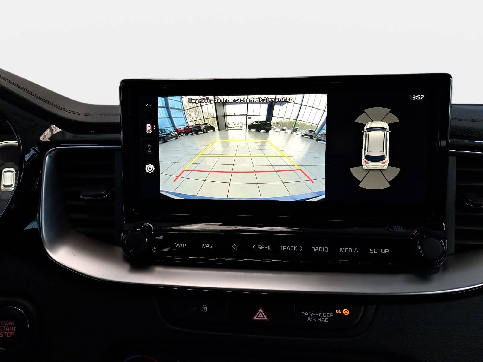 AusstattungSicherheitABS Airbag Alarmanlage Isofix Rückfahrkamera Seitenairbags Servolenkung Tagfahrlicht LED-Scheinwerfer Spurhalte Assistent Müdigkeitswarner Totwinkelwarner Abstandstempomat KomfortElektr. Fensterheber elektr. Stabilitätsprogramm (ESP) Klimaautomatik Lichtsensor Multifunktionslenkrad Navigationssystem Nebelscheinwerfer Regensensor Sitzheizung Start/Stopp Automatik Tempomat ExtrasDachreling Leichtmetallfelgen Sportpaket UnterhaltungBluetooth MP3-Schnittstelle Radio Beschreibung- 7 Jahre Herstellergarantie ab Meldung bei KIA - EcoDynamics (Start-Stopp-System – ISG) - Automatikgetriebe (7 Stufen) - Digitales Cockpit mit 12,3-Zoll-HD-Display - Sitzheizung vorn - Sitzbezüge in Stoff-Leder-Kombination (mit hochwertiger Ledernachbildung): schwarz - Privacy-Verglasung (dunkel getönte Scheiben ab B-Säule) - Ottopartikelfilter (OPF) - Klimaautomatik, 2-Zonen, mit Antibeschlagsensor - Fernlichtassistent - Parksensoren hinten - Parksensoren vorn - Regensensor - Rückfahrkamera - Smart-Key und Startknopf - Geschwindigkeitsregelanlage (Tempomat) - Geschwindigkeitsbegrenzer - Schaltwippen - Frontscheinwerfer (LED) - LED-Tagfahrlicht vorn - LED-Tagfahrlicht hinten - Geschwindigkeitsregelanlage, adaptiv inkl. Stop&Go-Funktion (SCC mit S&G) - Geschwindigkeitsregelanlage, navigationsbasiert (NSCC) - Spurfolgeassistent (Lane Follow Assit, LFA) - Smartphone-Schnittstelle Android-Auto und Apple CarPlay mit Sprachsteuerung - JBL Premium-Soundsystem mit Subwoofer und Zentrallautsprecher im Armaturenträger - Lederlenkrad, unten abgeflacht - Online-Dienste Kia Connect mit Kia Live (u.a. Verkehrsinformationen in Echtzeit, Wettervorhersage, lokale Suche, Parkmöglichkeiten) sowie Möglichkeit zum Abruf von Fahrzeuginformationen und Steuern von Fahrzeugfunktionen über die Kia Connect App - Kia Kartennavigation mit 26 cm (10,25 Zoll) Bildschirmdiagonale inkl. 2 "Over-the-Air"-Updates und 7-Jahre-Navigationskarten-Update - 2 Frontairbags - 2 Seitenairbags - 2 Vorhangairbags - Aktives Bremslicht (Emergency Stop Signal, ESS) - Antiblockiersystem (ABS) mit elektronischer Bremskraftverteilung - Berganfahrhilfe (Hill-Start Assist Control, HAC) - Bremsassistent (BAS) - Elektronisches Stabilitätsprogramm (ESC) mit Traktionskontrolle (TCS) - aktiver Spurhalteassistent mit korrigierendem Lenkeingriff (Lane Keep Assist, LKA) - Frontkollisionswarner (Forward Collision Avoidance Assist, FCA) mit Bremseingriff und Fußgängererkennung - Diebstahlwarnanlage - Reifendruckkontrollsystem mit Druckanzeige für jedes Rad im Display des Bordcomputers - Aktiver Totwinkelassistent mit Lenk- und Bremseingriff (BCA) - Autobahnassistent (HDA) - Intelligenter Geschwindigkeitsassistent (ISLA) - Insassenalarm (Rear Seat Alert, RSA) - Doppelkupplungsgetriebe - Querverkehrwarner zur Erkennung von Fahrzeugen im toten Winkel beim Querausparken, mit Notbremsfunktion (RCCA) - Frontkollisionswarner, erweitert um Abbiegefunktion (Forward Collision Avoidance Assist, Junction Turning FCA-JT) - Lenkrad beheizbar - Kunstlederschaltknauf - Drive Mode Select - Außenspiegel mit integrierten Blinkleuchten - Außenspiegel elektrisch einstellbar - Außenspiegel beheizbar - Außenspiegel elektrisch anklappbar - Bordcomputer - Dämmerungssensor - Elektrische Fensterheber mit Einklemmschutz vorn - Elektrische Fensterheber hinten - Parkbremse, elektronisch - Zentralverriegelung mit Funkfernbedienung - Elektrische Heckklappe, sensorgesteuert - Nebelscheinwerfer LED - Müdigkeitswarner (Driver Attention Warning, DAW) - 18-Zoll-Leichtmetallfelgen - Ausstiegsassistent (Safe Exit Warner, SEW) - 2 Frontlautsprecher - 2 Hecklautsprecher - 2 Hochtöner vorn - Dachantenne (Shark-Design) - Multifunktionslenkrad - Bluetooth-Freisprecheinrichtung - Digitaler Radioempfang (DAB+) - USB-Anschluss - Gurtwarnsystem hinten - Fahrer- und Beifahrersitz mit elektr. einstellb. Lendenwirbelstütze - Fahrersitz höhenverstellbar - Beifahrersitz höhenverstellbar - Getränkehalter vorne - Türöffner innen in Chromoptik - Dachhimmel und Säulenverkleidung in Schwarz - Induktive Ladestation für Smartphones - Kühlergrill in Glanzschwarz und Chromelement (matt) - Energie-Regenerationssystem (AMS) - 4,2-Zoll-Supervision-Instrumentenanzeige - Drittes Bremslicht (LED) im Heckspoiler - 12-Volt-Steckdose in der Zentralkonsole - 12-Volt-Steckdose im Gepäckraum - Einstiegsleisten aus Aluminium - Innenrückspiegel selbstabblendend - Gurtwarnsystem vorn - Kopfstützen an allen Sitzplätzen höhenverstellbar - Reifenreparaturset - Dachreling - Rückleuchten LED - Aluminium-Sportpedale - Dachkonsole vorn mit Brillenfach - Gepäcknetzösen im Laderaum - Gepäckraumabdeckung - Gepäckraumbeleuchtung - Fächer im Kofferraumboden - Einsätze an Armaturenträger, Türverkleidung und Schaltkulisseneinfassung in Glanzschwarz - Mittelarmlehne hinten mit integriertem Getränkehalter - Rücksitzbank asymmetrisch geteilt, umklappbar - Gepäckraumtrennnetz - Mittelarmlehne vorn mit Ablagefach - Dachkonsole vorn mit Lesespots und zentraler Beleuchtung - Mittelarmlehne vorn verschiebbar - Servolenkung, elektronisch unterstützt - Dreipunkt-Sicherheitsgurte an allen Sitzplätzen - ISOFIX-Halterungen an äußeren Rücksitzen - Sicherheitsgurte vorn höhenverstellbar - Wegfahrsperre - Wärmeschutzverglasung - Außenspiegel in Hochglanzschwarz - Fußmattenset - Sonnenblenden mit Make-up-Spiegeln, beleuchtet