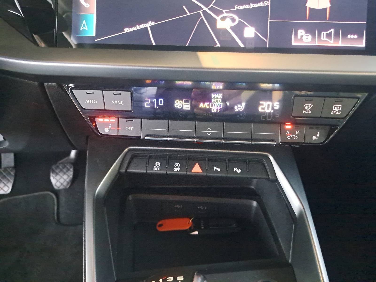 AusstattungSicherheitABS Airbag Einparkhilfe (Sensoren) Isofix Seitenairbags Servolenkung Tagfahrlicht LED-Scheinwerfer Notrufsystem KomfortElektr. Fensterheber elektr. Stabilitätsprogramm (ESP) Klimaautomatik Lichtsensor Multifunktionslenkrad Navigationssystem Regensensor Sitzheizung Sportfahrwerk Start/Stopp Automatik Tempomat ExtrasLeichtmetallfelgen UnterhaltungBluetooth MP3-Schnittstelle Radio Beschreibung- Multi-Media-Interface MMI Basic Plus MMI Radio Plus - Otto-Partikelfilter (OPF) - Parkbremse elektro-mechanisch - Audiosystem: Radioempfang digital (DAB) - Räder: Reifen-Reparaturkit - Räder: Reifendruck-Kontrollsystem - Schadstoffarm nach Abgasnorm Euro 6d - LED Scheinwerfer Basis (LED - Technologie) mit Leuchtweitenregulierung - Airbag: Seitenairbag vorn - Airbag: Seitenairbag vorn mitte (Interaktionsairbag) - Servolenkung elektronisch gesteuert - Sitzbelegungserkennung für Sicherheitsgurte - Sport-Fahrwerk - StartStop-Anlage - Steckdose (12V-Anschluß) in Mittelkonsole vorn - Stoßfänger Sport-Design (S-line) - LED Tagfahrlicht - Telefon: Universal-Schnittstelle Bluetooth - Wegfahrsperre (elektronisch) - Audi connect (Notruf- und Assistance-System) - Telefon: Audi Smartphone Interface - Dachhimmel Stoff, schwarz - Fahrassistenz-System: Parkassistent mit Einparkhilfe plus - PDC vorne und hinten - Frontscheibe Akustikglas - Geschwindigkeits-Regelanlage (Tempomat) mit Geschwindigkeits-Begrenzer - Kombiinstrument digital (virtual cockpit plus) - Komfort-Klimaautomatik 2-Zonen - Mittelarmlehne vorn mit Fach - Navigation: Multi-Media-Interface MMI Navigation Plus mit MMI Touch - Rücksitzlehne geteiltklappbar (40:20:40) - Sitzbezug Polsterung: Leder Kunstleder mono.pur 550 Kombination - Paket: Winter - Sitzheizung vorn - Lackierung: Sonderlackierung Daytonagrau Perleffekt - Airbag: Beifahrerseite abschaltbar - Airbag: Fahrer-Beifahrerseite - Anti-Blockier-System (ABS) - Antriebsart: Frontantrieb - Außenspiegel elektr. verstell- und heizbar - lackiert - integrierter Blinker - Dachkantenspoiler S-line - Einstiegsleisten mit Aluminiumeinlage und Schriftzug, beleuchtet - Elektron. Stabilitätskontrolle (ESC) - Fahrassistenz-System: Ausweich-Assistent - Fahrassistenz-System: Abbiege-Assistent links - Fahrassistenz-System: Bremsassistent (Audi pre sense front) - Fußgänger-Schutzsystem - Fahrassistenz-System: Spurverlassenswarnung - Funkschlüssel - Getriebe: 6-Gang - Innenausstattung: Dekoreinlagen Akzentteile in der Armaturentafel in Glasoptik schwarz - Innenausstattung: Dekoreinlagen Seideneffektlack, Platinum-Grau - Isofix-Aufnahmen für Kindersitz - Kindersicherung elektr. betätigt - Airbag: Kopf-Airbag-System (Sideguard) - Kopfstützen hinten (3-fach) - Lenkung: Lenkrad (Leder) Plus mit Multifunktion - Lenkung: Lenksäule (Lenkrad) mech. Höhen-Längsverstellung - Licht- und Regensensor - Räder: LM-Felgen 5-Arm, 8,0Jx17 mit Reifen 22545 R17