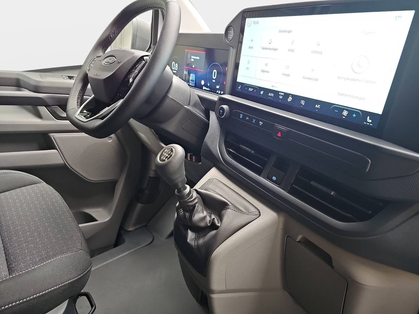AusstattungSicherheitABS Airbag Rückfahrkamera Servolenkung Tagfahrlicht LED-Scheinwerfer Spurhalte Assistent Müdigkeitswarner Notrufsystem KomfortElektr. Fensterheber elektr. Stabilitätsprogramm (ESP) Klimaautomatik Multifunktionslenkrad Regensensor Sitzheizung Start/Stopp Automatik Tempomat ExtrasUnterhaltungBluetooth MP3-Schnittstelle Radio Beschreibung- Fahrassistenz-System: Intelligente Beschleunigungskontrolle - Paket: Laderaumschutz - Bodenbelag Vinyl - Verkleidung seitlich hoch - Laderaumbeleuchtung LED - Lenkung: Lenkrad (Leder) mit Multifunktion - Räder: Reserverad in Fahrbereifung - Zentralverriegelung: Türentriegelung (2-Stufen) inkl. Verriegelung durch Türzuschlagen - Airbag Fahrerseite - Anti-Blockier-System (ABS) - Antriebsart: Frontantrieb - Armlehne Fahrersitz - Automatische Türverriegelung - Außenspiegel elektr. verstell- und heizbar, anklappbar - integrierter Blinker - Bodenbelag: Gummi im Fahrerhaus - Bordcomputer - Dach: Normaldach (flach) - H1 - Elektron. Stabilitäts-Programm (ESP) - Paket: Parken - Einparkhilfe vorne und hinten - Rückfahrkamera - Fahrassistenz-System: Berganfahr-Assistent - Fahrassistenz-System: Fernlichtassistent (Scheinwerfer mit Abblendautomatik) - Fahrassistenz-System: Notbrems-Assistent - Fahrassistenz-System: Notrufsystem - Fensterheber elektrisch vorn mit Quickdown / -up-Schaltung Fahrer-/Beifahrerseite - Feststellbremse elektrisch - Ford SYNC 4 mit AppLink und Touchscreen - FordPass Connect inkl. eCall - Paket: Winter - Sitzheizung vorne (Beifahrersitz außen) - Frontscheibe heizbar - Lenkrad heizbar - Getriebe: 6-Gang - Haltegriff A-Säule - Handschuhfach - Heckflügeltüren (Öffnungswinkel 90 Grad) - Heizung mit Umluftschaltung - Karosserie/Aufbau: Kasten (Standard) - Klimaautomatik - Laderaumtrennwand Metall hoch ohne Fenster - mit Durchladesystem unter Beifahrersitz - LKW-Zulassung - Power KeyFree-Startfunktion - Radstand 3500 mm - L2 - Räder: Reifendruck-Kontrollsystem - Rußpartikelfilter - Schadstoffarm nach Abgasnorm Euro 6e - Scheibenwischer mit Regensensor - Laderaum: Schiebetür Lade-/Fahrgastraum rechts - Schmutzfänger vorne und hinten - Paket: Sitz 6A - Fahrersitz (2-fach verstellbar) mit Lendenwirbelstützen - Beifahrerdoppelsitz, Stoff - Räder: Stahlfelgen 6,5x16 mit Radabdeckung und Reifen 215/65 R16C - Start/Stop-Anlage - Stoßfänger teillackiert - Paket: Technologie (2) - Falschfahrer-Warnfunktion - Pre-Collision - VK-Erkennung - Spurhalteassistent - Audiosystem: Radioempfang Digital (DAB / DAB+) mit 13 - Fahrassistenz-System: Müdigkeits-Warner - Traktionskontrolle - Trend - Audiosystem: USB-Schnittstelle - Wärmeschutzverglasung leicht getönt - Zul. Gesamtgewicht 3,20 t - Zweiter Schlüssel mit Fernbedienung klappbar - LED Teil Scheinwerfer mit Leuchtweitenregulierung - Laderaum: LED Beleuchtung (extra hell) und Hecktürbeleuchtung (extra hell)