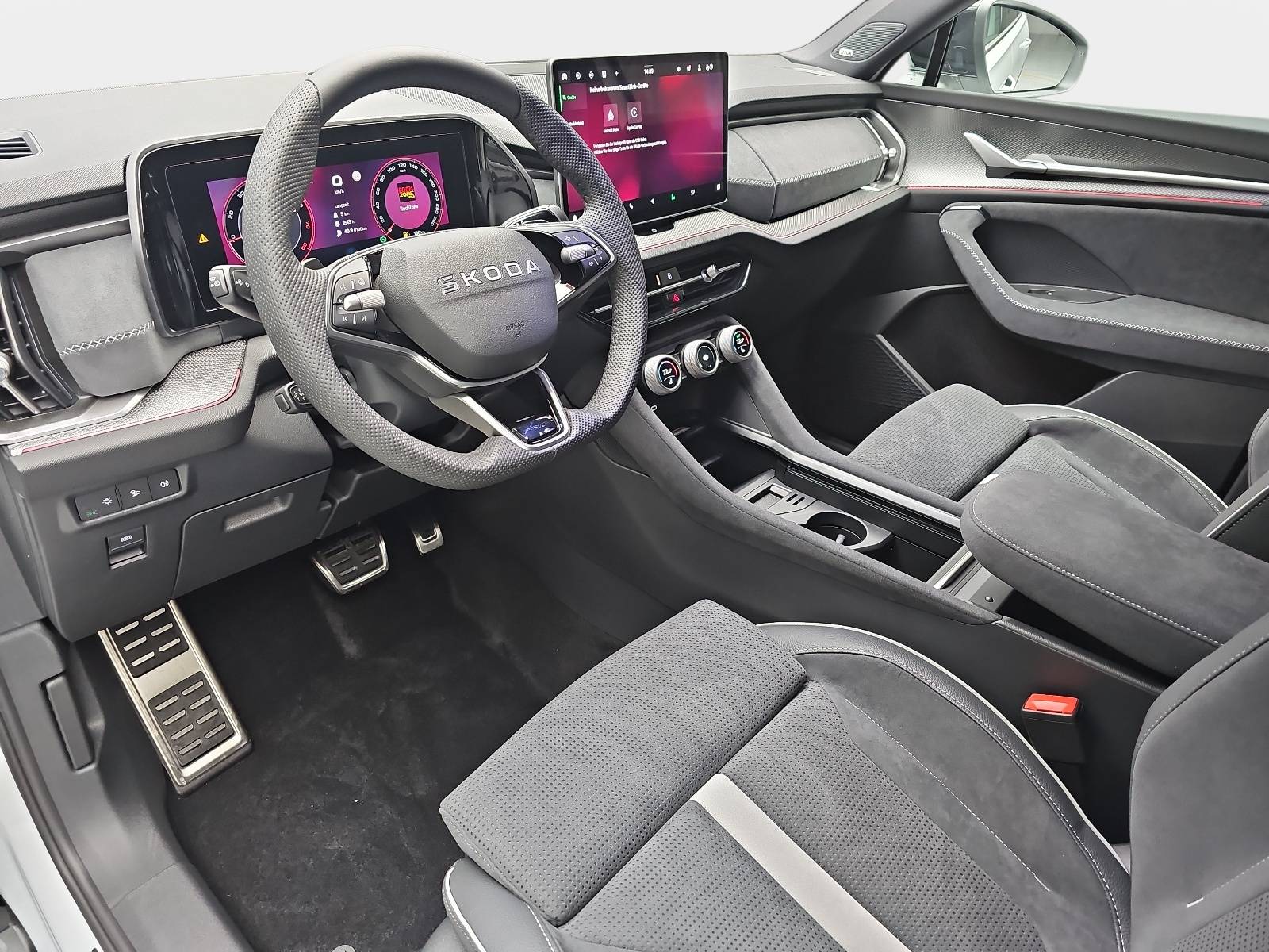 AusstattungSicherheitABS Airbag Alarmanlage Isofix Kurvenlicht Rückfahrkamera Seitenairbags Servolenkung Tagfahrlicht LED-Scheinwerfer Spurhalte Assistent Müdigkeitswarner Totwinkelwarner Abstandstempomat Notrufsystem KomfortElektr. Fensterheber elektr. Stabilitätsprogramm (ESP) Elektrische Sitze Klimaautomatik Lichtsensor Multifunktionslenkrad Navigationssystem Regensensor Sitzheizung Start/Stopp Automatik Tempomat ExtrasAnhängerkupplung Dachreling Leichtmetallfelgen Sportpaket Sportsitze UnterhaltungBluetooth MP3-Schnittstelle Radio Beschreibung- Anhängevorrichtung mechanisch schwenkbar und elektrisch auslösbar - Audiosystem: Sound-System Canton - Sitze: Sportsitze vorn elektr. verstellbar mit Memoryfunktion - Lendenwirbelstützen vorne - Räder: Stahlfelge 4x18 (Notrad) - Lackierung: Perleffekt-Lackierung - Ablagefach für Regenschirm - Airbag: Beifahrerseite abschaltbar - Airbag: Fahrerseite - Akustikglas Türscheiben vorn - Geräuschmaßnahme Akustik verbessert (Innengeräuschdämpfung erweitert) - Seitenscheiben hinten und Heckscheibe abgedunkelt (SunSet) - LED Ambiente-Beleuchtung - Anti-Blockier-System (ABS) - Antriebs-Schlupfregelung (ASR) - Antriebsart: Frontantrieb - Außenspiegel elektr. verstell-, heiz- und anklappbar, lackiert mit integrierter Blinkleuchte - Bedienschalter Digitale Drehregler (Smart Dials) - Bremsassistent - Brillenfach im Dachhimmel integriert - Dachreling schwarz - Edelstahlpedale Sportdesign - Einparkhilfe vorn und hinten mit Rückfahrkamera - Einstiegsleisten (Edelstahl) - Elektron. Stabilitäts-Programm (ESP) - Fahrassistenz-System: Abbiegebremsfunktion und Ausweichunterstützung - Fahrassistenz-System: Auffahrwarnsystem mit City-Notbremsfunktion (Frontradar-Assistent) - Fahrassistenz-System: Berganfahr-Assistent (Hill-Holder) - Fahrassistenz-System: Fahrprofilauswahl - Autom. Geschwindigkeitsregler (ACC) inkl. Speed-Limiter - Fahrassistenz-System: Kreuzungs-Assistent (Crossroad Assist) - Fahrassistenz-System: Multikollisionsbremse (Multi Collision Brake) - Fahrassistenz-System: Müdigkeitserkennung - Fahrassistenz-System: Spurhalteassistent (Lane Assist) - Fahrassistenz-System: Spurwechselassistent inkl. Auspark-Assistent und Ausstiegswarnung - Fahrassistenz-System: Verkehrszeichenerkennung - Fensterzierleisten schwarz, hochglänzend -Frontgrillblende, Rahmen schwarz - Getriebe: 7-Gang - Doppelkupplungsgetriebe DSG - Handschuhfach beleuchtet - Telefon: Induktionsladeschale für Smartphone 15 W - Audiosystem: Radioempfang digital (DAB+) - Komfort-Freisprecheinrichtung Bluetooth, mit Sprachsteuerung - Navigation-System mit Infotainment-System - Paket: LichtSiicht - Einschaltautomatik für Fahrlicht - Innenspiegel mit Abblendautomatik - Regensensor - Innenspiegel mit USB-Anschluss (Typ C) - Sitze: Isofix-Aufnahmen für Kindersitz an Beifahrer- und Rücksitz - Kindersicherung elektr. betätigt - Klimaanlage Climatronic 3-Zonen - Kofferraum / Heckklappe elektrisch betätigt (öffnen + schliessen) - Komfortöffnung für elektr. Heckklappe/-Deckel - Kombiinstrument digital (virtual cockpit plus) - Airbag: Kopf-Airbag-System - Lenkung: Lederlenkrad (Sport/Leder - 3-Speichen) mit Multifunktion und Schaltfunktion - Paket: Winter - Sitzheizung vorne und hinten - Lenkrad heizbar - Lenkung: Lenksäule (Lenkrad) verstellbar (vertikal / axial) - LED Matrix Scheinwerfer mit Dynamischem Fernlichtassistent - Fahrassistenz-System: Dynamischer Fernlichtassistent (Dynamic Light Assist) - LED Heckleuchten in Kristallglasoptik mit dynamischem Blinklicht - Mild-Hybrid-Technologie - Mittelarmlehne vorne und hinten - Otto-Partikelfilter (OPF) - Parkbremse elektronisch - Räder: Reifendruck-Kontrollsystem (Aktiv) - Räder: LM- Felgen mit Reifen 235/50 R19 - Sitze: Rücksitzlehne geteilt/klappbar - Schließ-/Startsystem Kessy inkl. Diebstahl-Warnanlage - Schwellerabdeckung / -verkleidung in Wagenfarbe - Airbag: Seitenairbag vorne und hinten - Airbag: Seitenairbag vorn mitte (Center-Airbag) - Servolenkung - Sitze: Sicherheitsgurte vorn höhenverstellbar - Sonnenblenden mit Spiegel beleuchtet - Start/Stop-Anlage - Steckdose (12V-Anschluß) im Koffer-/Laderaum - Telefon: USB-Schnittstelle vorn (2-fach, Typ C) - Warnanlage für Sicherheitsgurte, Fahrer-/Beifahrerseite und hinten außen - Telefon: Wireless SmartLink - Zentralverriegelung mit Fernbedienung - Zusatzheizer (PTC)