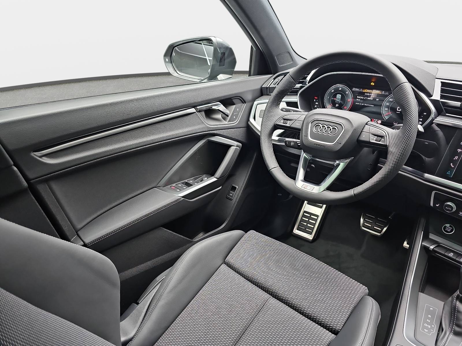 AusstattungSicherheitABS Airbag Isofix Kurvenlicht Rückfahrkamera Seitenairbags Servolenkung Tagfahrlicht LED-Scheinwerfer Spurhalte Assistent Müdigkeitswarner Totwinkelwarner Abstandstempomat Notrufsystem KomfortElektr. Fensterheber elektr. Stabilitätsprogramm (ESP) Klimaautomatik Lichtsensor Multifunktionslenkrad Navigationssystem Panoramadach Regensensor Sitzheizung Sportfahrwerk Start/Stopp Automatik Tempomat ExtrasAnhängerkupplung Dachreling Leichtmetallfelgen Schiebedach Sportpaket Sportsitze UnterhaltungBluetooth MP3-Schnittstelle Radio Beschreibung- Ambiente-Beleuchtung - Anhängerkupplung (Kugelkopf schwenkbar) - Audi connect (Notruf- und Assistance-System) - Fahrassistenz-System: Notfall-Assistent mit automatischem Notruf - Audi Smartphone Interface - Außenspiegel elektr. verstell-, heiz- und anklappbar - lackiert - integrierter LED-Blinker - Außenspiegel mit Bordsteinautomatik, rechts - Paket: Parken - Einparkhilfe vorn und hinten, optisch (APS Plus) - Rückfahrkamera - Adaptive Geschwindigkeitsregelanlage (Adaptive Cruise Control) mit Autom. Distanzregelung - Fahrassistenz-System: Anfahr-Assistent (hold assist) - Gepäckraumklappe elektr. betätigt (öffnen + schliessen) - Innenausstattung: Aluminium-Optik - Paket: Sicht - Licht- und Regensensor - Innenspiegel mit Abblendautomatik - Paket: Interieur S line - Laderaum: Ladekantenschutz (Edelstahl) - Innenausstattung: Dekoreinlagen Aluminium matt gebürstet, dunkel - Pedale und Fußstütze in Edelstahl - Dachhimmel Stoff, schwarz - Sitzbezug / Polsterung: Stoff Puls / Kunstleder mono.pur 550 Kombination - Sitze: Sportsitze vorn - höhenverstellbar - Sitze: Rücksitzlehne geteilt/klappbar, verschiebbar mit Mittelarmlehne (40:20:40) - Lenkung: Lenkrad (Leder - 3-Speichen) mit Multifunktion plus - Kombiinstrument digital (virtual cockpit plus) - Komfort-Klimaautomatik 2-Zonen - Räder: LM-Felgen 20-Speichen-V, graphitgrau, glanzgedreht, 7,0Jx19, Reifen 235/50 R19 - LED Matrix Scheinwerfer mit Leuchtweitenregulierung und Scheinwerfer-Reinigungsanlage (SRA) - LED Heckleuchten mit dynamischem Blinklicht - Lackierung: Metallic- oder Perleffekt Lackierung - Mittelarmlehne vorn Komfortausstattung - Navigation: Multi-Media-Interface MMI Navigation Plus - Fahrassistenz-System: Verkehrszeichenerkennung - Innenausstattung: Dekoreinlagen Akzentteile in der Armaturentafel in Glasoptik schwarz - Paket: Optik schwarz plus - Panoramadach vorn elektrisch, hinten fest - Rückfahrkamera - Schließ-/Startsystem Advanced Key (Komfortschlüssel) incl. Start-Stop-Knopf - Paket: Winter - Sitzheizung vorn - Fahrwerk: Sport-Fahrwerk - Verglasung: Scheiben hinten abgedunkelt (Privacyverglasung) - Airbag: Fahrer-/Beifahrerseite - Airbag Beifahrerseite abschaltbar - Anti-Blockier-System (ABS) - Antriebsart: Frontantrieb - Audi connect plus (Internetbasierende Dienste) - Dachreling schwarz - Einstiegsleisten mit Aluminiumeinlage und Schriftzug, beleuchtet - Fensterheber elektrisch - Fahrassistenz-System: Bremsassistent (Audi pre sense front) - Fahrassistenz-System: Insassen-Schutzsystem (Audi pre sense basic) - Fahrassistenz-System: Spurwechsel- u. Spurhalteassistent (Side Assist und Lane Assist) - Frontscheibe Akustikglas (Frontscheibe Wärmeschutzverglasung) - Getriebe: 7-Gang - Doppelkupplungsgetriebe S-tronic - Airbag: Kopf-Airbag-System (Sideguard) - Multi-Media-Interface MMI Basic Plus / MMI Radio Plus - Parkbremse elektro-mechanisch - Audiosystem: Radioempfang digital (DAB) - Räder: Reifen-Reparaturkit - Räder: Reifenkontroll-Anzeige - Rußpartikelfilter - Schadstoffarm nach Abgasnorm Euro 6e - Airbag: Seitenairbag vorn - Servolenkung elektro-mechanisch - Start/Stop-Anlage - Telefon: Universal-Schnittstelle Bluetooth - Lackierung: Voll-Lackierung - Stoßfänger Sport-Design (S-line) - Wegfahrsperre (elektronisch) @ Farben Interieur@