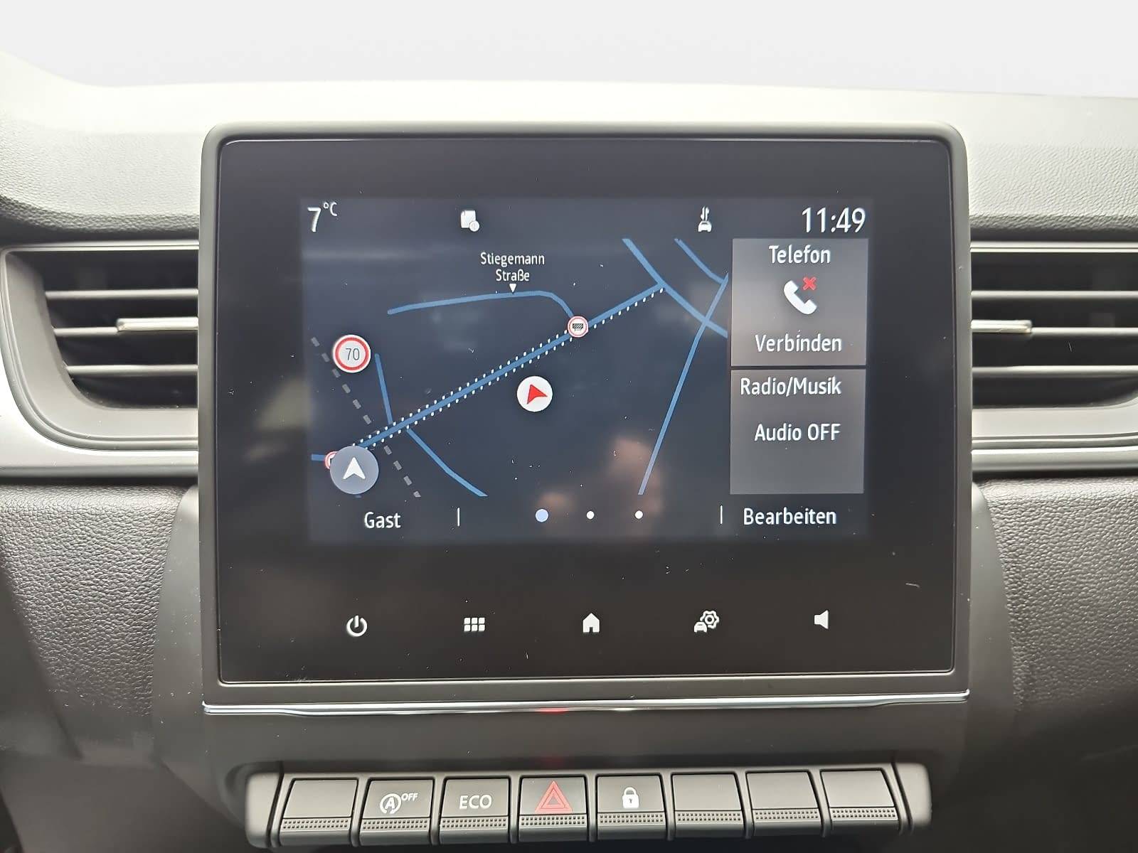 AusstattungSicherheitABS Airbag Isofix Seitenairbags Servolenkung Tagfahrlicht LED-Scheinwerfer Spurhalte Assistent Notrufsystem KomfortElektr. Fensterheber elektr. Stabilitätsprogramm (ESP) Klimaanlage Lichtsensor Multifunktionslenkrad Navigationssystem Start/Stopp Automatik Tempomat ExtrasUnterhaltungBluetooth MP3-Schnittstelle Radio Beschreibung- Sitz vorn links höhenverstellbar - Sitzbezug / Polsterung: Stoff Schwarz-Grau - Start/Stop-Anlage - Trommelbremse hinten - Lederlenkrad mit Multifunktion - Warnanlage für Sicherheitsgurte - Zentralverriegelung mit Fernbedienung - Mittelarmlehne mit Fach - Airbag: Fahrer-/Beifahrerseite - Anti-Blockier-System (ABS) - Antriebsart: Frontantrieb - Außenspiegel elektr. verstell- und heizbar - Blinkleuchte in Außenspiegel integriert - Bremsassistent - Dachantenne - Eco Mode (Fahrmodusschalter) - Einschaltautomatik für Fahrlicht - Elektron. Stabilitäts-Programm (ESP) - Fahrassistenz-System: Abstandswarner - Fahrassistenz-System: Aktiver Notbrems-Assistent - Fahrassistenz-System: Fußgängererkennung - Fahrassistenz-System: Sicherheitssystem mit automatischem Notruf (ERA GLONASS / eCall) - Fahrassistenz-System: Spurhalteassistent - Fensterheber 4x elektr. mit Impulsgeber links vorn - Geschwindigkeits-Regelanlage (Tempomat) + Geschwindigkeits-Begrenzeranlage - Getriebe 6-Gang - LED Heckleuchten - Heckscheibe heizbar - Isofix-Aufnahmen für Kindersitz + Beifahrersitz - Klimaanlage - Kofferraumabdeckung - Airbag: Kopf-Airbag-System vorn - Kopfstützen hinten verstellbar - Motor 1,0 Ltr. - 67 kW TCE - Navigation mit Multimedia-System Easy Link (Touchscreen) - Radzierkappen (Flexwheel) Stahlfelgen mit Reifen 215/60 R17 All-Season - Reifen-Reparaturkit - Reifendruck-Kontrollsystem - Rücksitzbank geteilt/klappbar - Schadstoffarm nach Abgasnorm Euro 6d - LED Scheinwerfer (Pure Vision) - Airbag: Seitenairbags - Seitenschutzleisten schwarz - Einparkhilfe hinten - Airbag: Beifahrerseite abschaltbar - Servolenkung elektrisch - Sicherheitsgurte vorn höhenverstellbar - Lenksäule (Lenkrad) höhenverstellbar + längsverstellbar