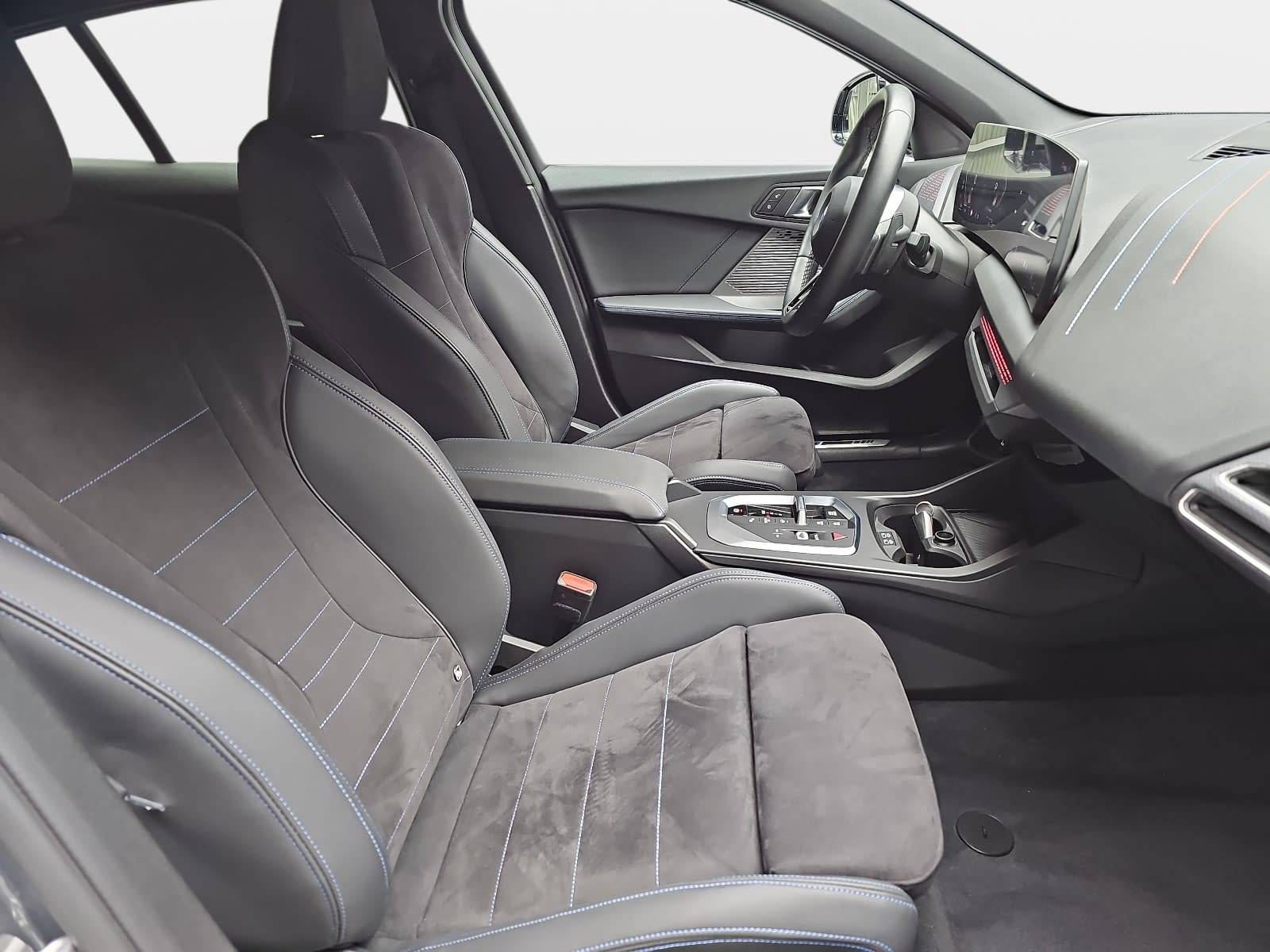 AusstattungSicherheitABS Airbag Einparkhilfe (Sensoren) Isofix Rückfahrkamera Seitenairbags Servolenkung Tagfahrlicht LED-Scheinwerfer Spurhalte Assistent Müdigkeitswarner Totwinkelwarner Notrufsystem KomfortElektr. Fensterheber elektr. Stabilitätsprogramm (ESP) Klimaautomatik Lichtsensor Multifunktionslenkrad Navigationssystem Regensensor Sitzheizung Sportfahrwerk Start/Stopp Automatik Tempomat ExtrasAnhängerkupplung Leichtmetallfelgen Sportpaket Sportsitze UnterhaltungBluetooth MP3-Schnittstelle Radio Beschreibung- Anhängerkupplung (Kugelkopf abnehmbar) - Räder: Diebstahlsicherung für Räder (Felgenschlösser) - RädeR: LM-Felgen 8x18 (Y-Speiche 975, Bicolor, Midnight Grey, glanzgedreht) mit Reifen 225/40 R18 - Lackierung: Metallic-Lackierung - Paket: Winter - Sitzheizung vorn - Verglasung: Sonnenschutzverglasung (hinten abgedunkelt) - Adaptives Fahrwerk M-Technic - Airbag: Fahrer-/Beifahrerseite - Airbag Beifahrerseite abschaltbar - Aktive Motorhaube - Anti-Blockier-System (ABS) - Armauflage vorn - Außenausstattung: Shadow-Line Hochglanz - Außenspiegel mit Projektionsfunktion - Navigation - BMW Live Cockpit Plus - Bremsassistent - Bremsenergierückgewinnung (Rekuperationssystem) - Dachhimmel Anthrazit - Dynamische Bremsleuchte - Dynamische Tractions Control (DTC) - Fahrassistenz-System: Active Guard (Bremsassistent) - Fahrassistenz-System: Anfahr-Assistent - Fahrassistenz-System: Aufmerksamkeits-Assistent - Fahrassistenz-System: Driving Assistant - Fahrassistenz-System: Heckaufprall-Vermeidung (Prävention Heckkollision) - Fahrassistenz-System: Querverkehrs-Assistent - Fahrassistenz-System: Spurwechsel-Warnsystem - Fahrassistenz-System: Performance Control - Fahrassistenz-System: Post-Crash-System (PC-iBrake) - Fensterheber elektrisch - Gepäckraumbeleuchtung - Geschwindigkeits-Regelanlage mit Bremsfunktion - Geschwindigkeits-Begrenzeranlage (Speed Limit Device) - Getriebe: 7-Gang - Doppelkupplungsgetriebe mit Steptronic und Schaltwippen - Innenausstattung: Interieurleisten Illuminated Aluminium Graphit - Isofix-Aufnahmen für Kindersitz an Rücksitz und Beifahrersitz - Klimaautomatik - Airbag: Kopf-Airbag-System - Lenkung: Lenkrad (Leder) mit Multifunktion M-Technic - Licht- und Regensensor - Lichtassistent (Follow me home) - M Sport - Mild-Hybrid 125 kW (Motor 1,5 Ltr. - 115 kW) - Audiosystem: Multimedia-Schnittstelle 2 x USB (Typ C) Mittelkonsole vorn - Paket: Parkassistent - Park-Assistent - Einparkhilfe vorne und hinten - Rückfahrkamera - Anfahrüberwachung - Fahrassistenz-System: Anhängerassistent - Fahrassistenz-System: Rückfahrhilfe Notbremsfunktion (Active PDC) - Parkbremse elektrisch - Personalisierungssystem (BMW My Modes) - Personalisierungssystem (Personal eSIM) - Audiosystem: Radioempfang digital (DAB+) - Räder: Reifendruck-Kontrollsystem - Rücksitzlehne geteilt/klappbar (60:40) - Schadstoffarm nach Abgasnorm Euro 6e - LED Scheinwerfer - Airbag: Seitenairbag vorn - Service-System: Gesetzlicher Notruf - Service-System: Intelligenter Notruf inkl. TeleServices - Servolenkung Servotronic - Sitzbezug / Polsterung: M Alcantara / Veganza Kombination (Schwarz mit blau Kontraststeppung) - Sitze: Sportsitze vorn - Steckdose (12V-Anschluß) in Mittelkonsole vorn - Zentralverriegelung mit Fernbedienung