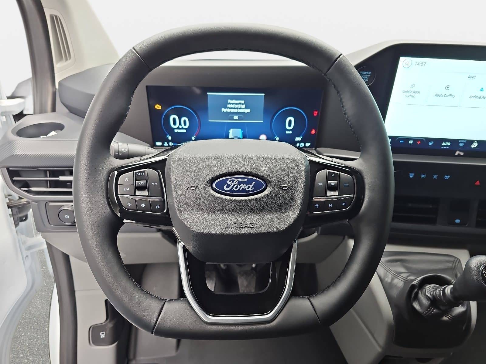 AusstattungSicherheitABS Airbag Rückfahrkamera Servolenkung Tagfahrlicht LED-Scheinwerfer Spurhalte Assistent Müdigkeitswarner Notrufsystem KomfortElektr. Fensterheber elektr. Stabilitätsprogramm (ESP) Klimaautomatik Lichtsensor Multifunktionslenkrad Regensensor Sitzheizung Start/Stopp Automatik Tempomat ExtrasUnterhaltungBluetooth MP3-Schnittstelle Radio Beschreibung- Armlehne Fahrersitz - Automatische Türverriegelung - Außenspiegel elektr. verstell- und heizbar, anklappbar - integrierter Blinker - Bodenbelag: Gummi im Fahrerhaus - Bordcomputer - Dach: Normaldach (flach) - H1 - Elektron. Stabilitäts-Programm (ESP) - Paket: Parken - Einparkhilfe vorne und hinten - Rückfahrkamera - Fahrassistenz-System: Berganfahr-Assistent - Fahrassistenz-System: Fernlichtassistent (Scheinwerfer mit Abblendautomatik) - Fahrassistenz-System: Notbrems-Assistent - Fahrassistenz-System: Notrufsystem - Fensterheber elektrisch vorn mit Quickdown / -up-Schaltung Fahrer-/Beifahrerseite - Feststellbremse elektrisch - Ford SYNC 4 mit AppLink und Touchscreen - FordPass Connect inkl. eCall - Paket: Winter - Sitzheizung vorne (Beifahrersitz außen) - Frontscheibe heizbar - Lenkrad heizbar - Getriebe: 6-Gang - Haltegriff A-Säule - Handschuhfach - Heckflügeltüren (Öffnungswinkel 90 Grad) - Heizung mit Umluftschaltung - Karosserie/Aufbau: Kasten (Standard) - Klimaautomatik - Laderaumtrennwand Metall hoch ohne Fenster - mit Durchladesystem unter Beifahrersitz - LKW-Zulassung - Power KeyFree-Startfunktion - Radstand 3500 mm - L2 - Räder: Reifendruck-Kontrollsystem - Rußpartikelfilter - Schadstoffarm nach Abgasnorm Euro 6e - Scheibenwischer mit Regensensor - Laderaum: Schiebetür Lade-/Fahrgastraum rechts - Schmutzfänger vorne und hinten - Paket: Sitz 6A - Fahrersitz (2-fach verstellbar) mit Lendenwirbelstützen - Beifahrerdoppelsitz, Stoff - Räder: Stahlfelgen 6,5x16 mit Radabdeckung und Reifen 215/65 R16C - Start/Stop-Anlage - Stoßfänger teillackiert - Paket: Technologie (2) - Falschfahrer-Warnfunktion - Pre-Collision - VK-Erkennung - Spurhalteassistent - Audiosystem: Radioempfang Digital (DAB / DAB+) mit 13 - Fahrassistenz-System: Müdigkeits-Warner - Traktionskontrolle - Trend - Audiosystem: USB-Schnittstelle - Wärmeschutzverglasung leicht getönt - Zul. Gesamtgewicht 3,20 t - Zweiter Schlüssel mit Fernbedienung klappbar - LED Teil Scheinwerfer mit Leuchtweitenregulierung - Laderaum: LED Beleuchtung (extra hell) und Hecktürbeleuchtung (extra hell) - Fahrassistenz-System: Intelligente Beschleunigungskontrolle - Paket: Laderaumschutz - Bodenbelag Vinyl - Verkleidung seitlich hoch - Laderaumbeleuchtung LED - Lenkung: Lenkrad (Leder) mit Multifunktion - Räder: Reserverad in Fahrbereifung - Zentralverriegelung: Türentriegelung (2-Stufen) inkl. Verriegelung durch Türzuschlagen - Airbag Fahrerseite - Anti-Blockier-System (ABS) - Antriebsart: Frontantrieb