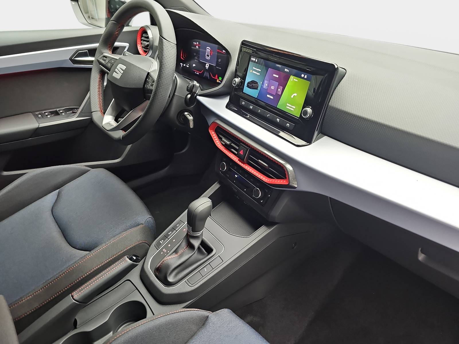 AusstattungSicherheitABS Airbag Isofix Rückfahrkamera Seitenairbags Servolenkung Tagfahrlicht LED-Scheinwerfer Spurhalte Assistent Müdigkeitswarner Notrufsystem KomfortElektr. Fensterheber elektr. Stabilitätsprogramm (ESP) Klimaautomatik Lichtsensor Multifunktionslenkrad Nebelscheinwerfer Regensensor Sitzheizung Sportfahrwerk Start/Stopp Automatik Tempomat ExtrasLeichtmetallfelgen Sportpaket Sportsitze UnterhaltungBluetooth MP3-Schnittstelle Radio Beschreibung- Anschlussgarantie 3-Jahre bis max. 100.000 KM - Paket: Parken - Einparkhilfe vorn und hinten - Rückfahrkamera - Außenspiegel elektr. verstell- und heizbar und anklappbar - lackiert - integrierter LED-Blinker - Lichtassistent (Coming Home, Leaving Home) - Paket: Sicht - Licht-/Regensensor - Innenspiegel mit Abblendautomatik - Gechwindigkeits-Regelanlage mit Geschwindigkeits-Begrenzer - Fensterheber elektrisch hinten + hinten - Laderaum: Laderaumboden verstellbar - Verzurrösen - Gepäckraumabdeckung - Kofferraumbeleuchtung - Mittelarmlehne vorn mit Fach - Lackierung: Metallic- o. Perleffekt Lackierung - Räder: Reserverad als Notrad - LED-Voll Scheinwerfer mit Leuchtweitenregulierung - Verglasung: Seitenscheiben hinten und Heckscheibe abgedunkelt - Paket: Winter - Sitzheizung vorn - Airbag: Fahrer-/Beifahrerseite - Beifahrerseite abschaltbar - Ambiente-Beleuchtung LED - Anti-Blockier-System (ABS) - Antriebs-Schlupfregelung (ASR) - Außentemperaturanzeige - Bordcomputer - Bremsassistent - Dachhimmel schwarz - Elektr. Bremskraftverteilung - Elektron. Stabilitätskontrolle (ESC) - Fahrassistenz-System: Ablenkungs- und Müdigkeitserkennung - Fahrassistenz-System: Fahrprofilauswahl (SEAT Drive Profile) - Fahrassistenz-System: Multikollisionsbremse (Multi Collision Brake) - Fahrassistenz-System: Umfeldbeobachtungssystem (Front assist) mit City-Notbremsfunktion - Fahrassistenz-System: Verkehrszeichenerkennung - Getriebe: 7-Gang - Doppelkupplungsgetriebe DSG - LED-Teil Heckleuchten - Heckscheibe heizbar mit Heckscheibenwischer - Innenausstattung: Chrom-Applikationen - Innenraumfilter: Pollenfilter - Isofix-Aufnahmen für Kindersitz - Klimaanlage Climatronic 2-Zonen - Virtual Cockpit - Kombiinstrument digital (8 Zoll) - Airbag: Kopf-Airbag-System - Kopfstützen vorn + hinten - Lenkung: Lenkrad (Leder) mit Multifunktion und Schaltfuntion + Lenksäule höhen- und längsverstellbar - Räder: LM-Felgen Design DYNAMIC mit Reifen 215/45 R17 - Modellpflege - Motor 1,0 Ltr. - 85 kW TSI - Notrufsystem - Otto-Partikelfilter (OPF) - Audiosystem: Radioempfang digital (DAB+) - Audiosystem: AppConnect (Apple CarPlay + Android Auto) - Sitze: Rücksitzlehne geteilt/klappbar (1/3-2/3) - Schadstoffarm nach Abgasnorm Euro 6e - Schalt-/Wählhebelgriff Leder - SEAT Media-System mit Touchscreen-Farbdisplay - Telefon: Bluetooth Audio-Streaming - Audiosystem: USB-Schnittstelle vorn (2-fach, Typ C) - Telefon: Bluetooth-Schnittstelle mit Freisprecheinrichtung integriert - Mobile Online Dienste Seat Connect - Airbag: Seitenairbag - Servolenkung elektronisch gesteuert (Servotronic) - Sport-Fahrwerk FR - Sitze: Sportsitze vorne höhenverstellbar - Start/Stop-Anlage - Steckdose (12V-Anschluß) vorn - Stoßfänger FR-Design - LED Tagfahrlicht - Warnanlage für Sicherheitsgurt-System - Wegfahrsperre (elektronisch) - Wärmeschutzverglasung - Zentralverriegelung mit Fernbedienung @ Farben Interieur@