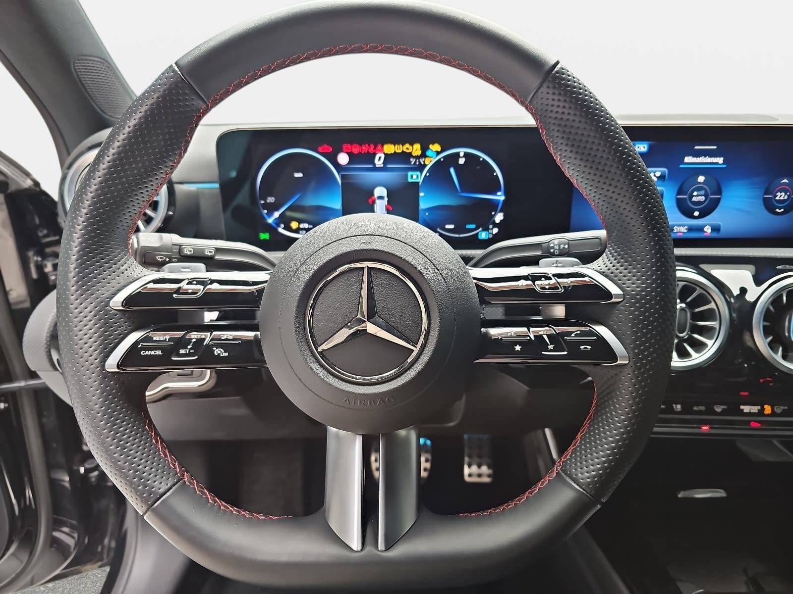 AusstattungSicherheitABS Airbag Einparkhilfe (Sensoren) Isofix Rückfahrkamera Seitenairbags Servolenkung Tagfahrlicht LED-Scheinwerfer Spurhalte Assistent Müdigkeitswarner Notrufsystem KomfortElektr. Fensterheber elektr. Stabilitätsprogramm (ESP) Klimaautomatik Lichtsensor Multifunktionslenkrad Navigationssystem Regensensor Sitzheizung Start/Stopp Automatik Tempomat ExtrasLeichtmetallfelgen Sportpaket Sportsitze UnterhaltungBluetooth MP3-Schnittstelle Radio Beschreibung- Fahrzeug Setup (Onlinedienste / Apps) - Fahrzeug-Monitoring (Fahrzeugortungssystem) - Fensterheber elektrisch vorn + hinten - Getriebe: 7-Gang - Doppelkupplungsgetriebe DCT - Airbag: Knieairbag Fahrerseite - Kommunikationsmodul (LTE) Vorbereitung Mercedes me connect - Airbag: Kopf-Airbag-System (Windowbag) - Mercedes-Benz Notrufsystem - Multimediasystem MBUX (Digitales Multimedia-System) - Otto-Partikelfilter (OPF) - Räder: Reifendruck-Kontrollsystem - Rücksitzlehne geteilt / klappbar - Schadstoffarm nach Abgasnorm Euro 6e - Airbag: Seitenairbag (Sidebag) vorn - Sprachbediensystem Erweiterte Funktionen (MBUX) - Start/Stop-Anlage - LED Tagfahrlicht - Tempomat mit Geschwindigkeitslimit-Assistent - Paket: Advanced Plus - Außen-/Innenspiegel mit Abblendautomatik - Paket: USB Plus - USB im Fond - Paket: Park - aktiver Park-Assistent - Einparkhilfe vorne und hinten - Rückfahrkamera - Digitales Instrumenten-Display - Infotainment-System: Remote Service (Plus) - Service-System: MBUX Navigation Premium - Service-System: Fingerabdruck-Scanner für MBUX - Media-Display - Mittelkonsole vorn mit Rollo / Ablage - Mittelarmlehne hinten - Paket: Winter - Sitzheizung vorn - Keyless-Go Startanlage und Zentralverriegelung - Ambiente-Beleuchtung - Telefon: Induktionsladeschale für Smartphone - Bremsanlage: Sportausführung - Komfort-Fahrwerk tiefergelegt (Agility Control) - Räder: Reifen-Reparaturset (Tirefit) - Lenkung: Lenkrad (Leder/Sport) mit Multifunktion und Schaltwippen/-tasten, galvanisiert - Fahrassistenz-System: Verkehrs-Informations-System Live Traffic - Klimaautomatik (Thermotronik) - Lackierung: Metallic-Lackierung - Navigationssystem: Festplattennavigation - Paket: Sitz-Komfort - Komfortsportsitze vorne - Lendenwirbelstützen vorn, elektr. verstellbar - Telefon: Smartphone integriert - Airbag: Fahrer-/Beifahrerseite - Airbag Beifahrerseite abschaltbar - Anti-Blockier-System (ABS) - Außenspiegel elektr. verstell- und heizbar, anklappbar - lackiert - integrierter LED-Blinker - Airbag: Beckenairbag vorn (Pelvisbag) - DAB-Tuner (Radioempfang digital) - Paket: AMG Line - Sportsitze - Fußmatten - Dachhimmel schwarz - Edelstahlpedale Sportdesign - Paket: Styling-Paket (AMG / Exterieur) - Seitenschweller Wagenfarbe - Stoßfänger vorne Frontspoiler - Paket: Licht- und Sicht - LED-High Performance Scheinwerfer - Fernlichtassistent Adaptive - Regen-/Lichtsensor - Sonnenblenden mit Spiegel (beleuchtet) - Sitzbezug / Polsterung: Ledernachbildung Artico / Dinamica - Getränkehalter vorn (doppelt) - Räder: AMG-Speichenräder 18 mit Reifen 225/40 R18 - Direktlenkung mit variabler Lenkkraft-Unterstützung - Elektron. Stabilitäts-Programm (ESP) - Fahrassistenz-System: Agility Select / Dynamic Select (Fahrmodusschalter) - Fahrassistenz-System: Verkehrszeichenerkennung - Fahrassistenz-System: aktiver Bremsassistent - Fahrassistenz-System: aktiver Spurhalteassistent