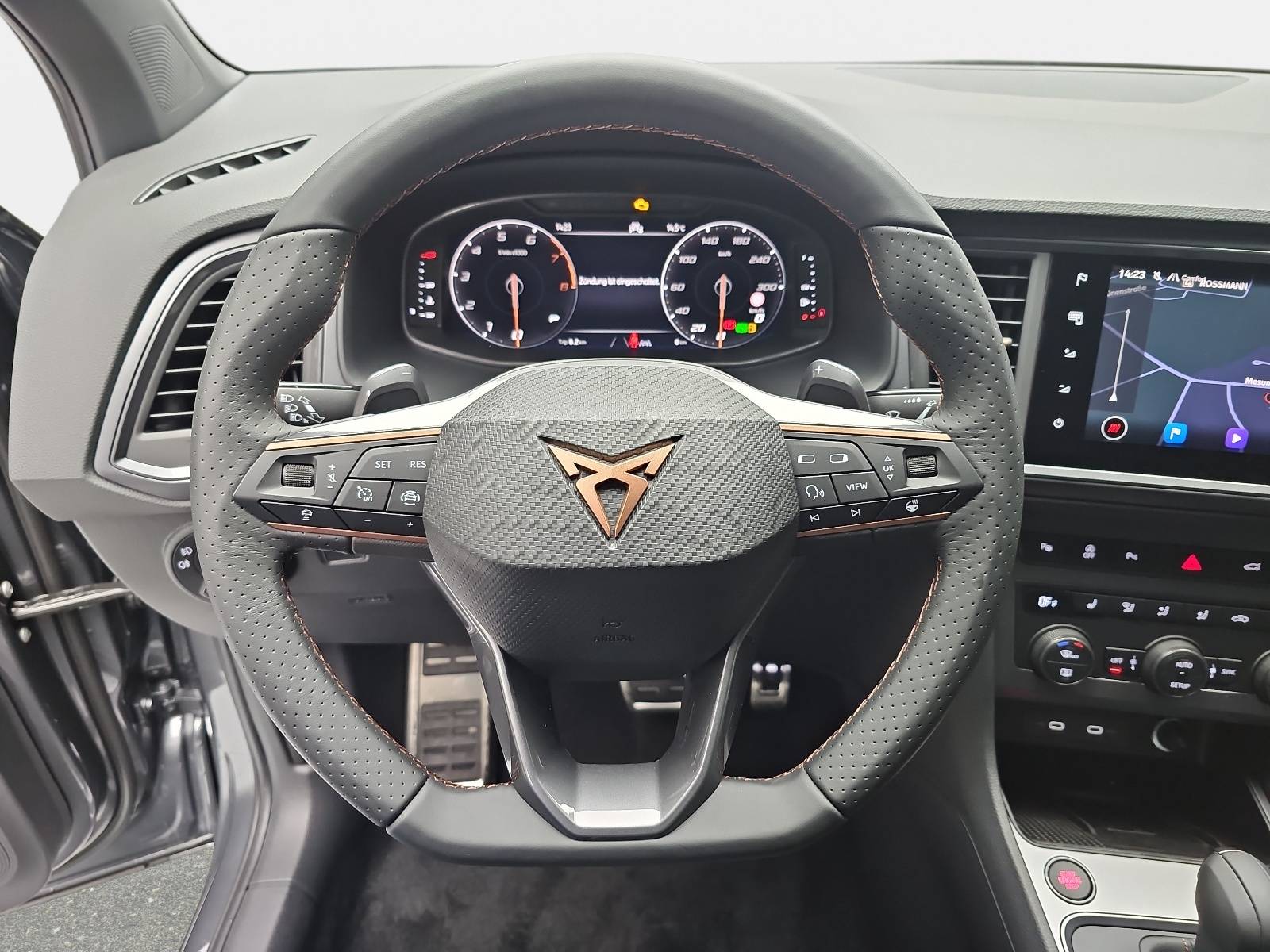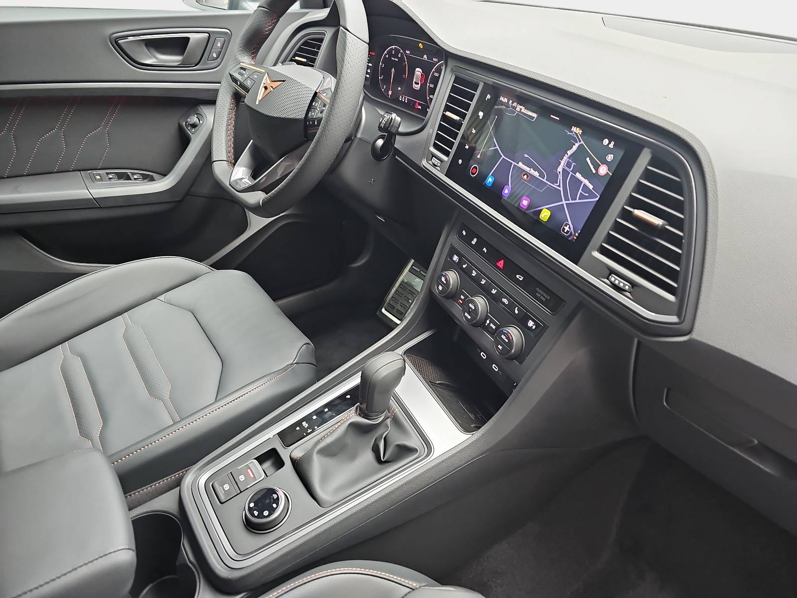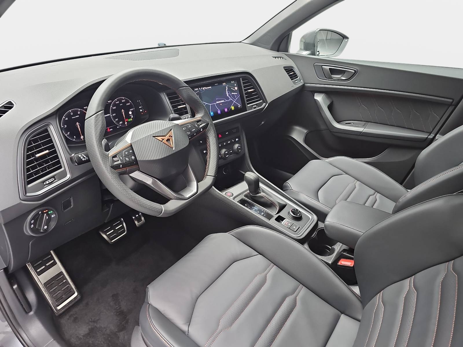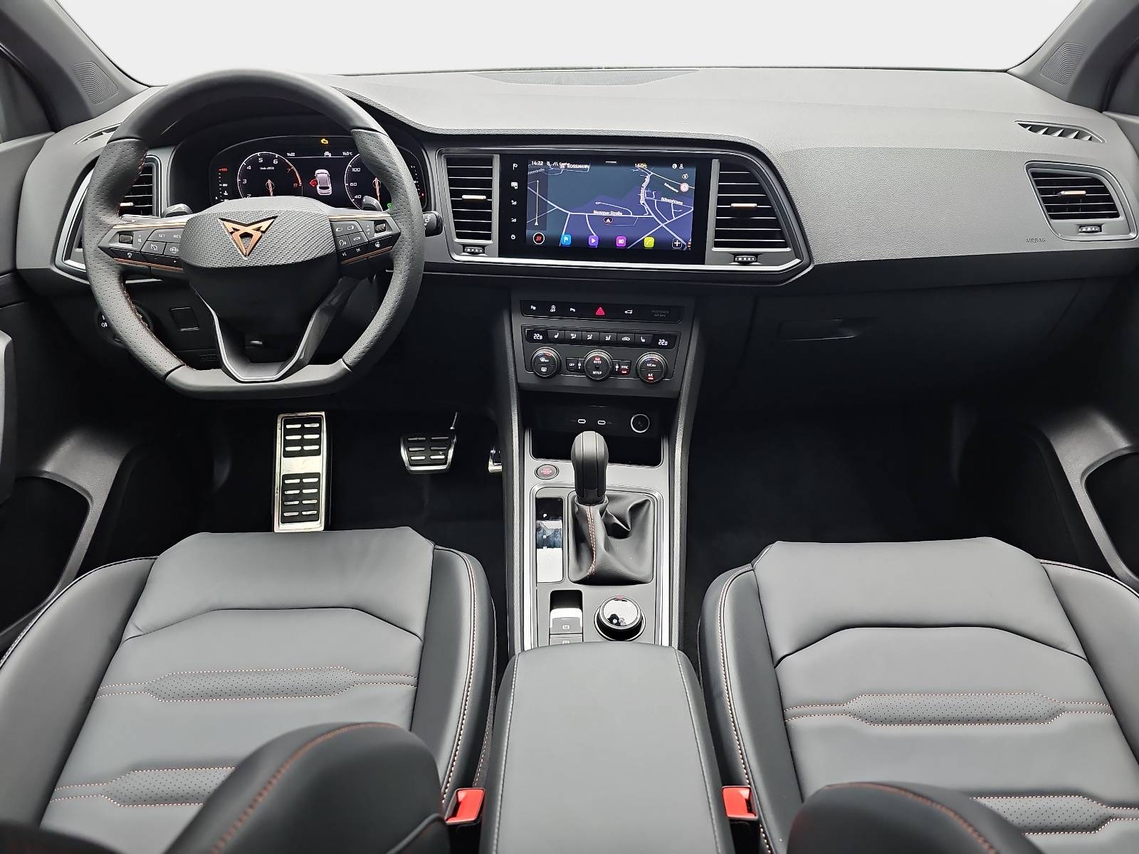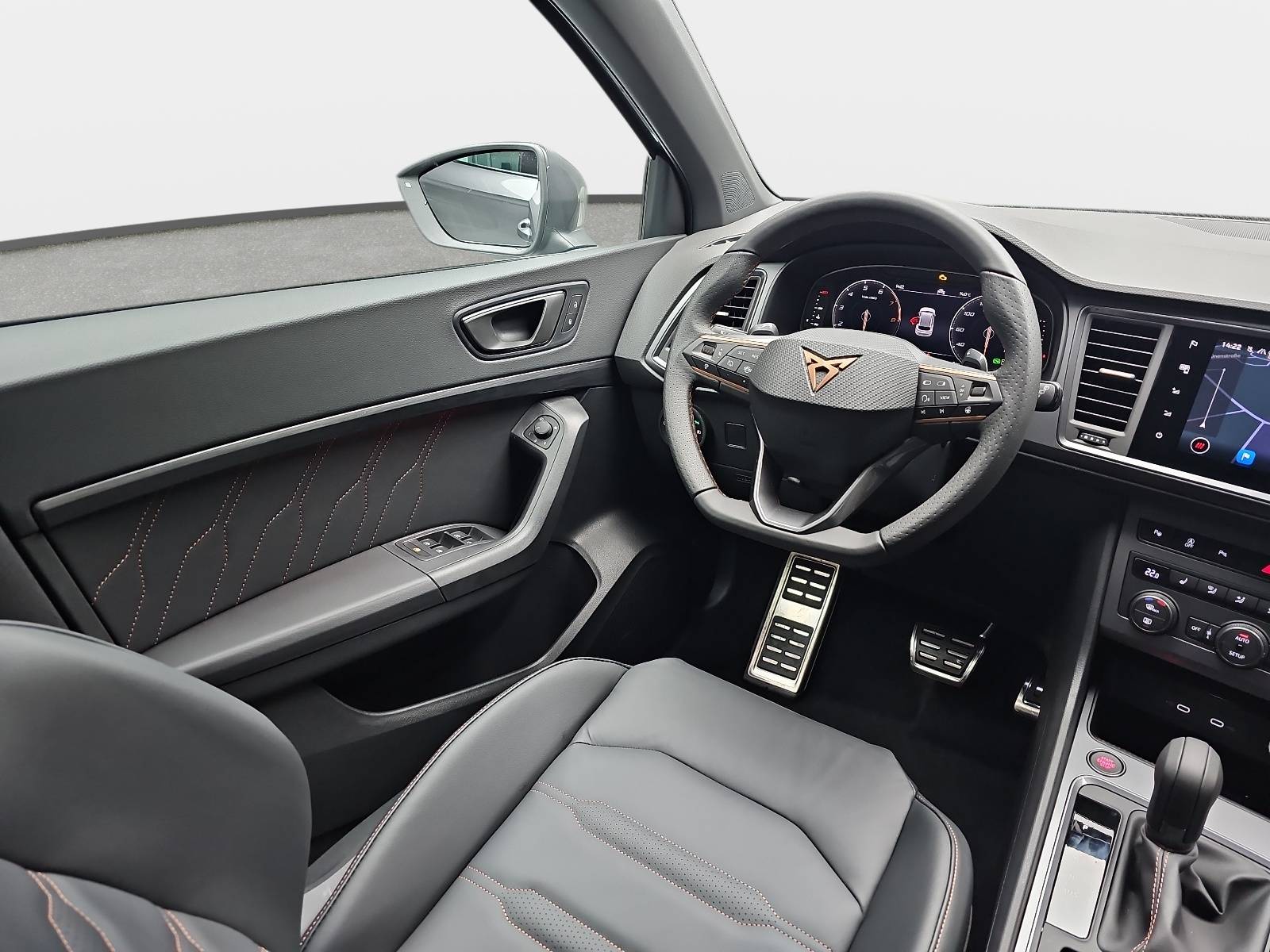 AusstattungSicherheitABS Airbag Einparkhilfe (Sensoren) Isofix Kurvenlicht Rückfahrkamera Seitenairbags Servolenkung Tagfahrlicht LED-Scheinwerfer Spurhalte Assistent Müdigkeitswarner Abstandstempomat Notrufsystem KomfortElektr. Fensterheber elektr. Stabilitätsprogramm (ESP) Elektrische Sitze Klimaautomatik Lichtsensor Multifunktionslenkrad Navigationssystem Nebelscheinwerfer Panoramadach Regensensor Sitzheizung Start/Stopp Automatik Tempomat ExtrasAnhängerkupplung Dachreling Leichtmetallfelgen Schiebedach Sportpaket Sportsitze UnterhaltungBluetooth MP3-Schnittstelle Radio Beschreibung- Bordcomputer - Dachreling schwarz - Einstiegsleisten (Aluminium) vorn, beleuchtet - Elektron. Stabilitätskontrolle (ESC) - Fahrassistenz-System: Berganfahr-Assistent - Fahrassistenz-System: Fahrprofilauswahl (CUPRA Drive Profile) - Fahrassistenz-System: Müdigkeitserkennung - Paket: Parken - Parklenkassistent mit Einparkhilfe vorn und hinten inkl. Rückfahrkamera - Fahrassistenz-System: Spurhalteassistent - Fahrassistenz-System: Umfeldbeobachtungssystem (Front assist) mit City-Notbremsfunktion - Fahrassistenz-System: Verkehrszeichenerkennung - Fensterheber elektrisch vorn + hinten mit Komfortschaltung - Audiosystem: Full Link (MirrorLink, Apple CarPlay und Android Auto) - Fußraumbeleuchtung LED - Laderaum: Gepäckraumabdeckung - Gepäckraumbeleuchtung (LED) - Getriebe: 7-Gang - Doppelkupplungsgetriebe DSG - Handschuhfach mit LED-Beleuchtung - LED Heckleuchten mit dynamischem Blinklicht - Heckspoiler Wagenfarbe (Dachspoiler) - Isofix-Aufnahmen für Kindersitz an Rücksitz - Klimaanlage Climatronic 2-Zonen - Airbag: Knieairbag Fahrerseite - Kombiinstrument digital (10,25 Zoll) - Airbag: Kopf-Airbag-System - Sitze: Lendenwirbelstützen Sitze vorne, verstellbar - Lenkung: Lenkrad heizbar (Sport/Leder) mit Multifunktion und Schaltfunktion - Lichtassistent (Coming Home, Leaving Home) - Paket: Sicht- Licht- und Regensensor - Innenspiegel mit Abblendautomatik - Mittelkonsole vorn mit Mittelarmlehne, Becherhalter, Ablagebox und Luftausströmer hinten - Mittelarmlehne hinten - Modellpflege - LED Nebelscheinwerfer mit Abbiegelicht - Notrufsystem - Otto-Partikelfilter (OPF) - Parkbremse elektrisch mit Auto-Hold-Funktion - Pedale Aluminium-Design - Radlaufabdeckung vorn und hinten lackiert - Räder: Reifenkontroll-Anzeige - Rücksitzlehne geteilt/klappbar (1/3-2/3) - Schadstoffarm nach Abgasnorm Euro 6e - LED Voll Scheinwerfer mit Leuchtweitenregelung automatisch - Schließ-/Startsystem Kessy - Airbag: Seitenairbag - Verglasung: Seitenscheiben hinten und Heckscheibe abgedunkelt - Servolenkung elektro-mechanisch - Sonnenblenden mit Spiegel (beleuchtet) - Sitze: Sport-Schalensitze vorn mit integrierten Kopfstützen - höhenverstellbar - Start/Stop-Anlage - Steckdose (12V-Anschluß) vorn - Stoßfänger vorn Cupra-Design - Stoßfänger hinten Cupra-Design mit Diffusor - LED Tagfahrlicht - USB-Ladeanschlüsse (2-fach, Typ C) für 2.Sitzreihe - Laderaum: Verzurrösen Koffer-/Laderaum - Wegfahrsperre (elektronisch) - Wärmeschutzverglasung - Zentralverriegelung mit Fernbedienung - Anhängerkupplung (Kugelkopf mit elektr. Entriegelung, schwenkbar) - Garantieverlängerung 3 Jahre/100.000 km - Dachhimmel schwarz - Heckklappe/-Deckel elektr. betätigt (öffnen + schliessen, sensorgesteuert) - Telefon: Induktionsladeschale für Smartphone - Paket: Leder - Leder-Paket, Schwarz - Paket: Winter - Sitzheizung vorn - Lenkrad heizbar - Räder: LM-Felgen 8x19 (Exclusive I, schwarz matt) mit Reifen 245/40 R19 - Lackierung: Metallic-Lackierung - Räder: Reserverad als Notrad - Automatische Distanzregelung (mit follow to stop) und Speed-Limiter - Rücksitzlehnen umklappbar mit Fernentriegelung im Kofferraum - Panoramadach - Schiebe-/Hebedach elektrisch (Glas) - Sitze: Sitz vorn links elektr. verstellbar (mit Memory) - Bremsleuchte dritte - Ablagetasche an Vordersitzlehnen - Airbag: Fahrer-/Beifahrerseite - Airbag Beifahrerseite abschaltbar - Ambiente-Beleuchtung LED - Anti-Blockier-System (ABS) - Antriebs-Schlupfregelung (ASR) - Antriebsart: Allradantrieb - Navigationssystem mit Touchscreen Farbbildschirm - Audiosystem: Radioempfang digital (DAB+) - Audiosystem: Sprachsteuerungs-System - Audiosystem: USB-Schnittstelle vorn (2-fach, Typ C) - Außenspiegel elektr. verstell-, heiz- und anklappbar - Welcome Light - lackiert - integrierter Blinker - Telefon: Bluetooth-Schnittstelle mit Freisprecheinrichtung integriert