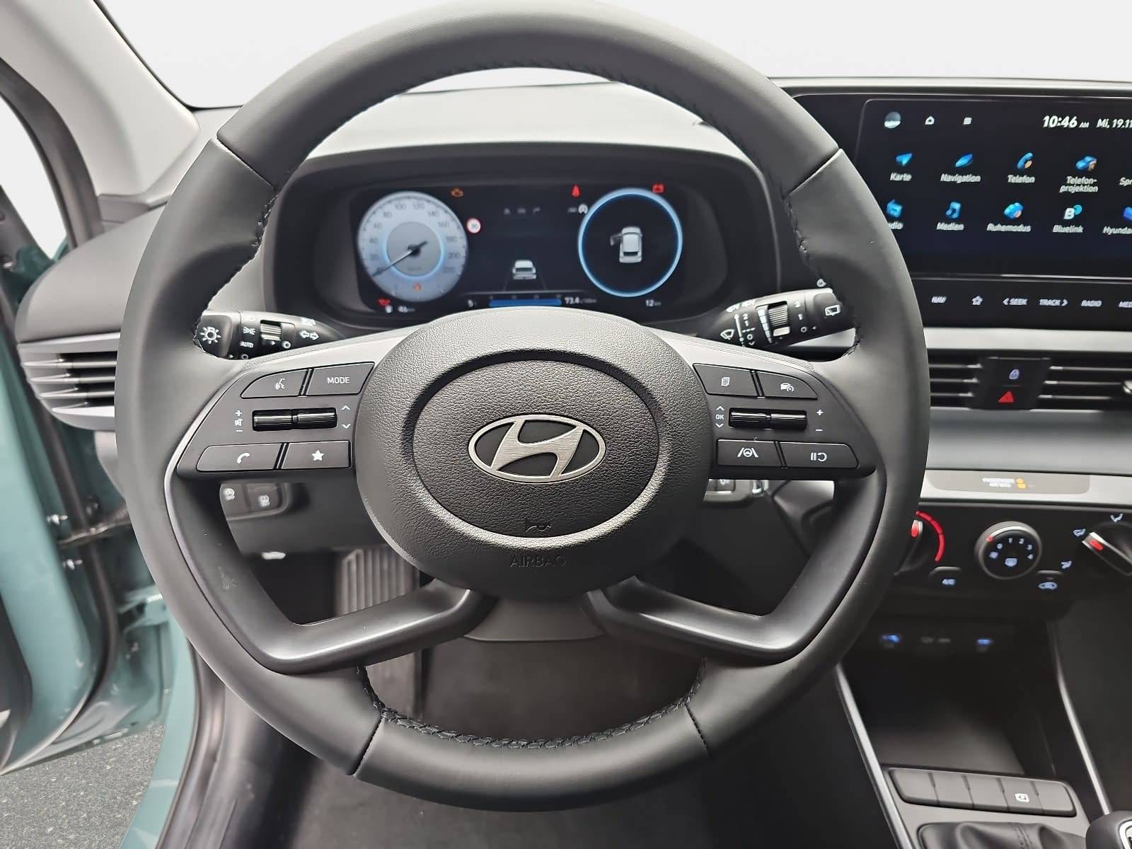 AusstattungSicherheitABS Airbag Isofix Rückfahrkamera Seitenairbags Servolenkung Tagfahrlicht LED-Scheinwerfer Spurhalte Assistent Müdigkeitswarner Totwinkelwarner Notrufsystem KomfortElektr. Fensterheber elektr. Stabilitätsprogramm (ESP) Klimaanlage Lichtsensor Multifunktionslenkrad Start/Stopp Automatik Tempomat ExtrasLeichtmetallfelgen UnterhaltungBluetooth MP3-Schnittstelle Radio Beschreibung- Mica-Lackierung / Mineraleffekt-Lackierung - LED Scheinwerfer mit Leuchtweitenregulierung - LED Tagfahrlicht - Airbag: Fahrer-/Beifahrerseite - Airbag Beifahrerseite abschaltbar - Anti-Blockier-System (ABS) - Audiosystem mit Touchscreen-Farbdisplay (10,25 Zoll) - Außenspiegel elektr. verstell- und heizbar, anklappbar - lackiert - integrierter Blinker - Bordcomputer - Digital Cockpit (Virtual Cockpit) - Bremsleuchte dritte - Dachspoiler Wagenfarbe - Einparkhilfe hinten - Einschaltautomatik für Fahrlicht / Lichtsensor - Elektron. Stabilitätskontrolle (ESC) mit Bremsassistent - Fahrassistenz-System: aktiver Spurhalteassistent (LKAS, Lane Keep Assist System) - Fahrassistenz-System: Side-Assistent - Fahrassistenz-System: Aufmerksamkeits-Assistent - Fahrassistenz-System: Autonome Notbremsfunktion inkl. Frontkollisionswarnung (FCA) - Fahrassistenz-System: Fernlichtassistent - Fahrassistenz-System: Insassenalarm (Rear Occopant Alert, ROA) - Fahrassistenz-System: Multikollisionsbremse (Multi Collision Brake) - Fahrassistenz-System: Sicherheitssystem mit automatischem Notruf (ERA GLONASS / eCall) - Fahrassistenz-System: Verkehrszeichenerkennung, erweitert (Geschwindigkeits-Regel-/Begrenzeranlage) - Fahrer-Informations-System (Display 4,2 Zoll) - Fensterheber elektrisch vorne und hinten - Telefon: Freisprecheinrichtung Bluetooth - Gepäckraum: Laderaumleuchte - Gepäckraumabdeckung - Geschwindigkeits-Regelanlage (Tempomat) mit Geschwindigkeits-Begrenzer - Getriebe: 5-Gang - Gurtstraffer - Heckscheibe heizbar mit Heckwischer - Klimaanlage - Airbag: Kopf-Airbag-System - Kopfstützen vorne und hinten verstellbar - Kühlergrill schwarz (glanzlackiert) - Lenkung: Lenkrad (Leder 4-Speichen) mit Multifunktion - Lenkung: Lenksäule (Lenkrad) höhen-/längsverstellbar - Mittelarmlehne vorne - Modellpflege - Motor 1,2 Ltr. - 59 kW TGDI KAT - Otto-Partikelfilter (OPF) - Audiosystem: Radioempfang digital (DAB+) - Räder: Leichtmetallfelgen Front poliert mit Reifen 195/55 R16 - Räder: Reifen-Reparaturkit - Räder: Reifendruck-Kontrollsystem - Rückfahrkamera - Sitze: Rücksitzlehne geteilt/klappbar - Schadstoffarm nach Abgasnorm Euro 6e - Airbag: Seitenairbag vorn - Service-System: Remote Services (Blue Link) - Servolenkung - Sicherheitsgurte vorn höhenverstellbar - Sitze: Sitz vorn links höhenverstellbar - Sitzbezug / Polsterung: Stoff - Sonnenblenden mit Spiegel - beleuchtet - Start/Stop-Anlage - Steckdose (12V-Anschluß) vorn - Türgriffe außen Wagenfarbe - Audiosystem: USB-Anschluss (Typ C) - Warnanlage für Sicherheitsgurte, Fahrer-/Beifahrerseite - Wegfahrsperre (elektronisch) - Wireless SmartLink (Apple CarPlay) - Verglasung: Scheiben im Fond abgedunkelt (Privacy Glass) - Zentralverriegelung mit Fernbedienung