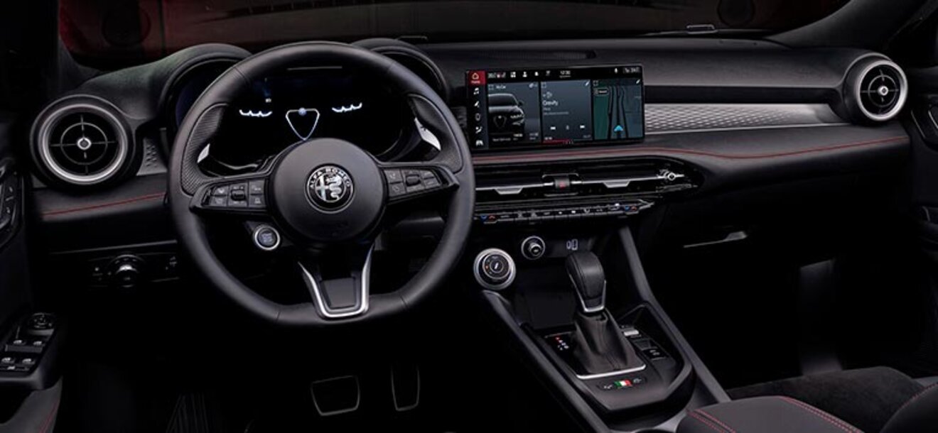 Entworfen und gefertigt, um den Fahrer jederzeit in den Mittelpunkt der Aufmerksamkeit zu stellen. Hochwertige Materialien und eine neuartige Ambiente-Beleuchtung des Armaturenbretts schaffen unvergleichliche Alfa Romeo Stimmung. Italienische Gastfreundschaft in der Welt der Premium-C-SUVs.