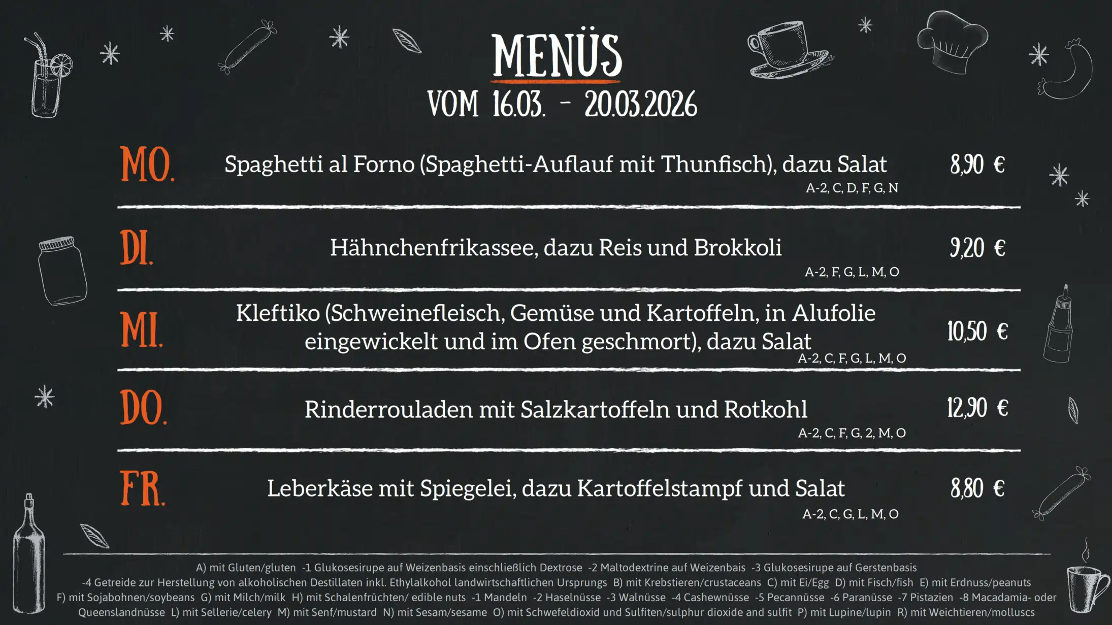 Hier finden Sie unsere Speisen und Getränke:
